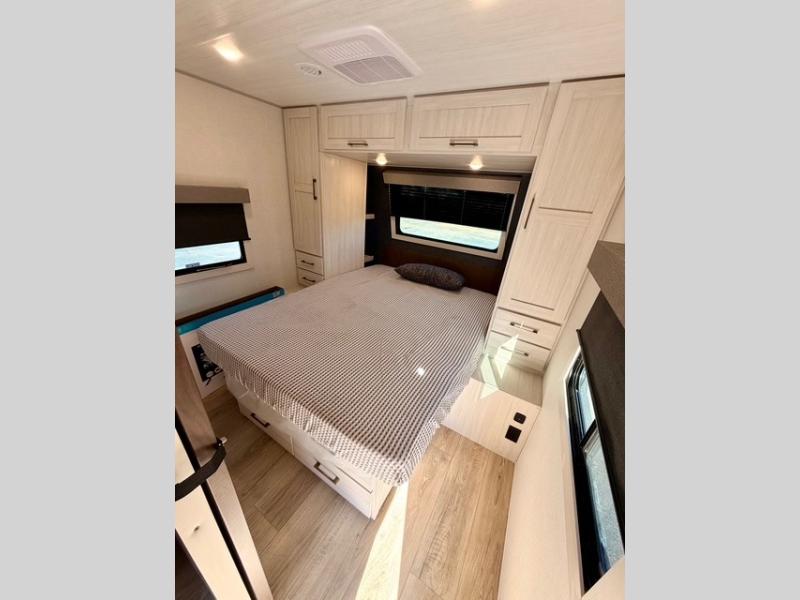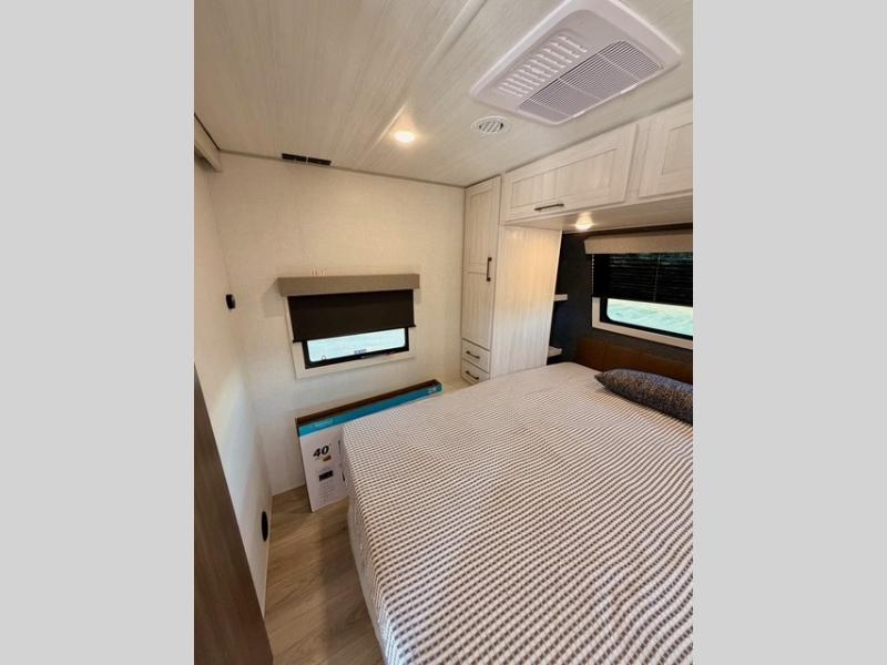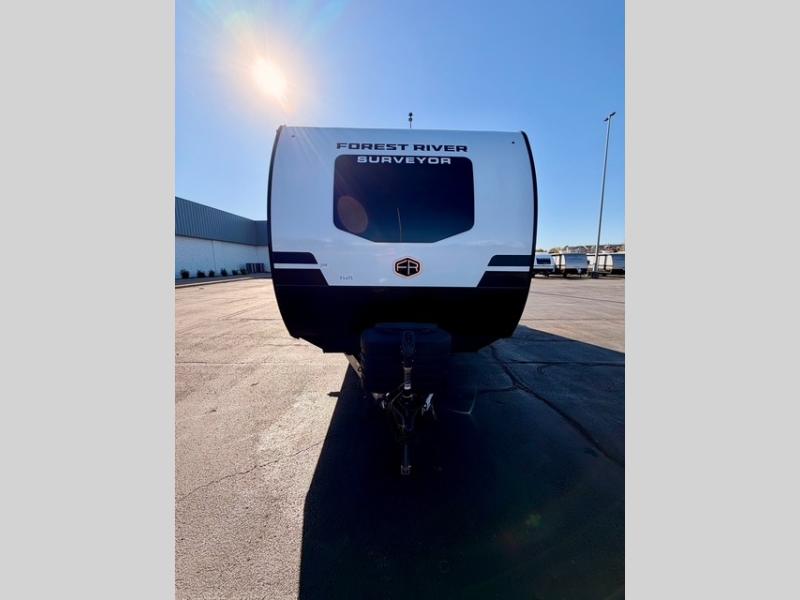 With any Surveyor Legend travel trailer by Forest River you will enjoy quality craftsmanship, convenient amenities, and at-home comforts. The Azdel composite walls provide a longer-lasting trailer, and the power tongue jack with hitch light makes getting back on the road quick and easy. There are also Goodyear® tires and a tire pressure monitoring system (TPMS) for more confident, hassle-free towing. Each model is built with thoughtful details like slam-latch exterior baggage doors and an automotive-style tinted front windshield that gives the front cap a sleek look while letting in natural light. You’ll appreciate camping with a tankless water heater for endless hot showers, a 2" rear accessory hitch to bring bikes or extra gear along, plus a central vacuum system that helps keep your easy-to-clean interior looking fresh.