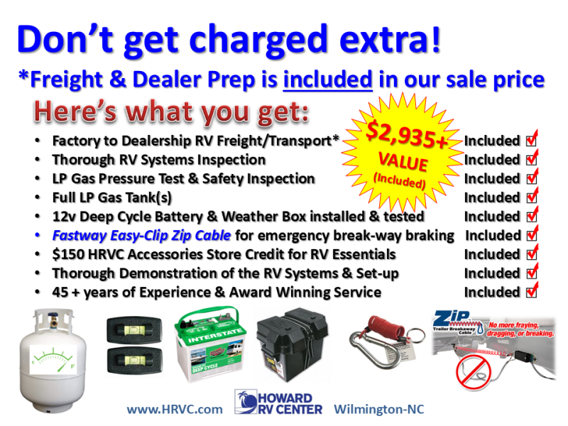 NO EXTRA DEALER FEES! - You only pay NC-HU Tax (3%) and license fee ($85) if registered in North Carolina. Factory Freight to Dealer cost, dealer prep, & dealer admin fee are all included in our advertised sale price. Many dealers will charge $1,000 to $3,500 more for these fees over their advertised price.