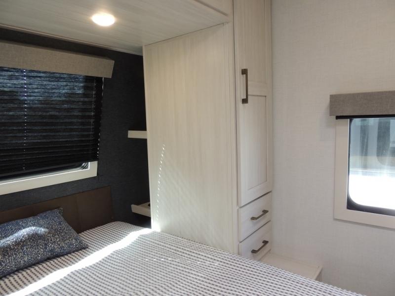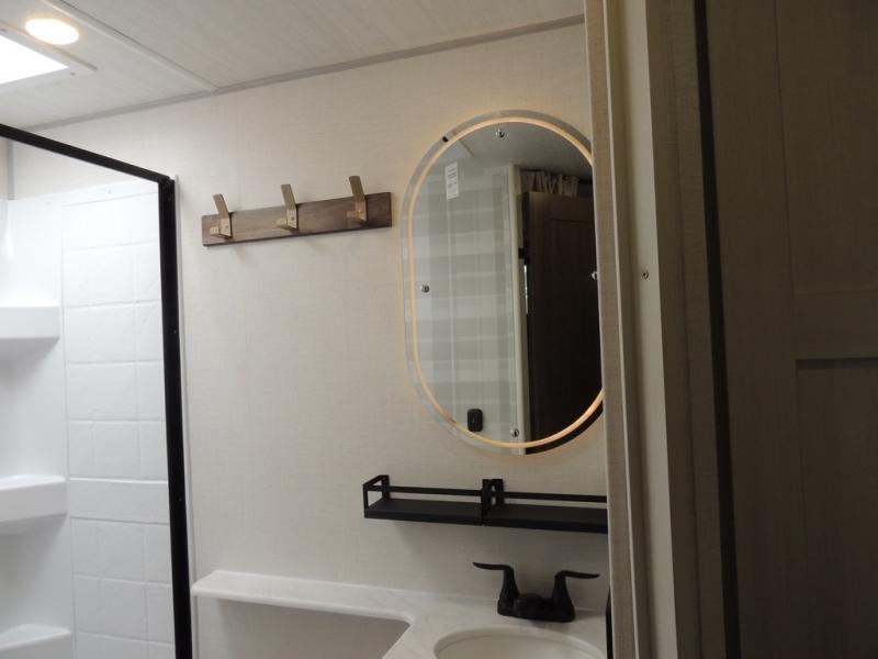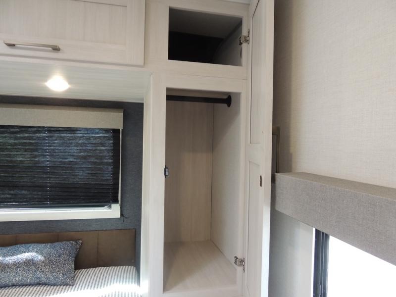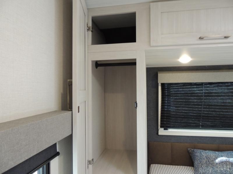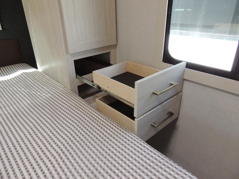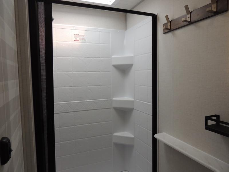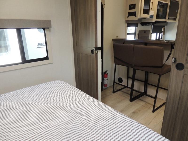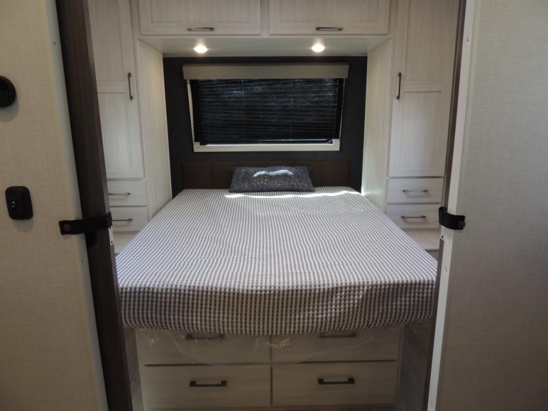 Every trip to the campground will be spent in comfort with this single slide out travel trailer. Once you arrive at the site, remove the kayaks or bikes from the rear storage door, start lunch on the outside kitchen, and put out the 15' power awning with LED lights. The interior includes a booth dinette slide with storage, a bar top with stools, plus an HD TV for movie nights. After a day of fun, head to the front private bedroom for a great night's rest on the queen bed, and you can store your belongings in the dual bedroom wardrobes!