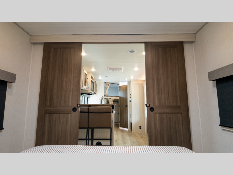 Q: Want a family layout with residential amenities that’s still towable by your half-ton? A: The 260BHLE delivers double bunks, island queen suite, an outdoor kitchen, and solar prep—all packed into 29'11" and 5,778 lb dry weight for easy hauling across Michigan.