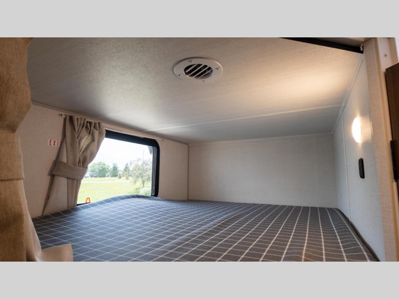 - Rear double-over-double bunks plus front walk-around queen bedroom