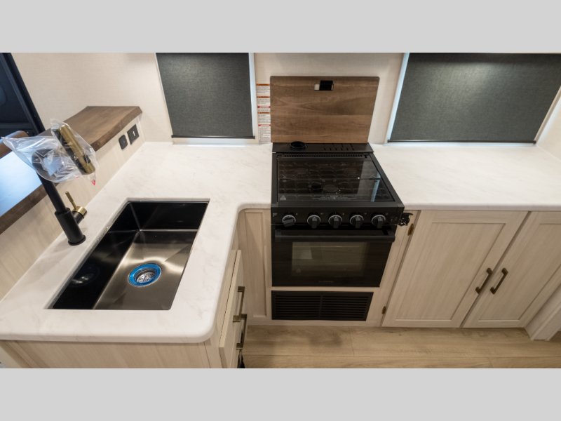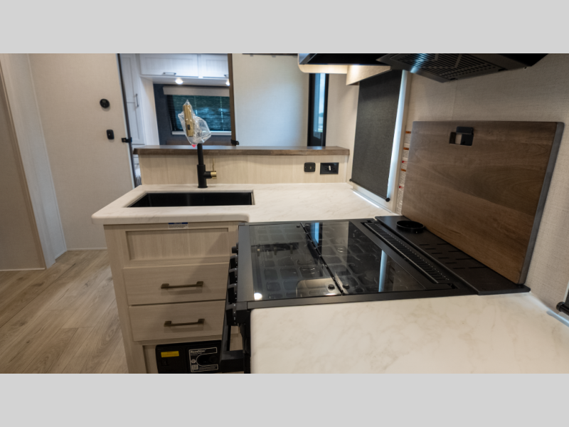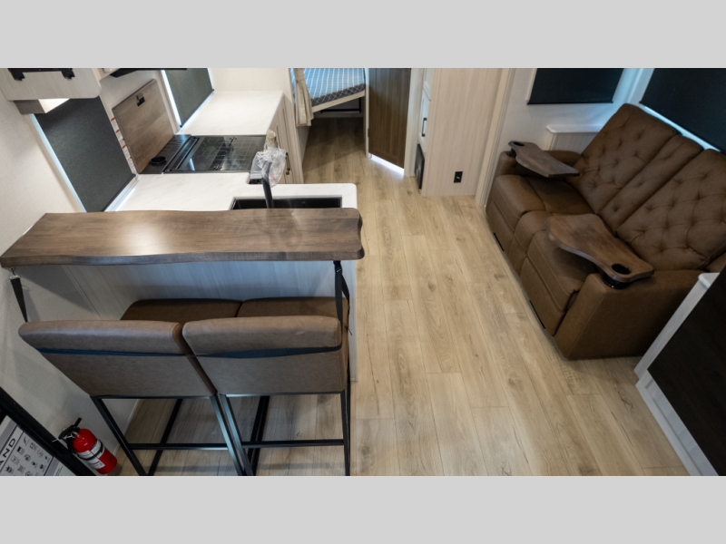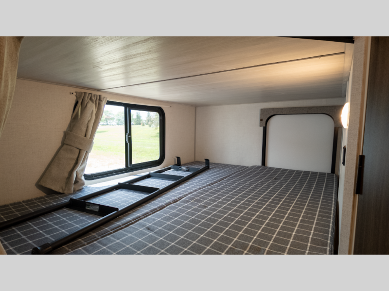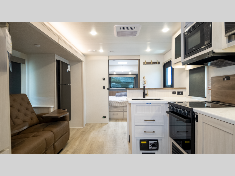 Every trip to the campground will be spent in comfort with this single slide out travel trailer. Once you arrive at the site, remove the kayaks or bikes from the rear storage door, start lunch on the outside kitchen, and put out the 15' power awning with LED lights. The interior includes a booth dinette slide with storage, a bar top with stools, plus an HD TV for movie nights. After a day of fun, head to the front private bedroom for a great night's rest on the queen bed, and you can store your belongings in the dual bedroom wardrobes!