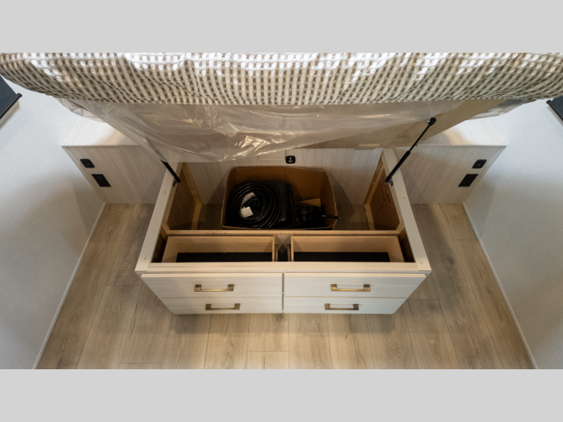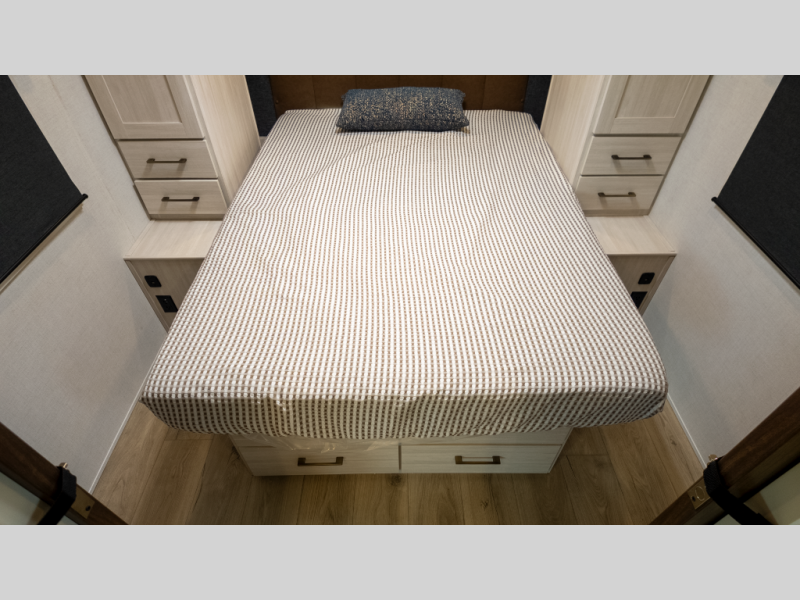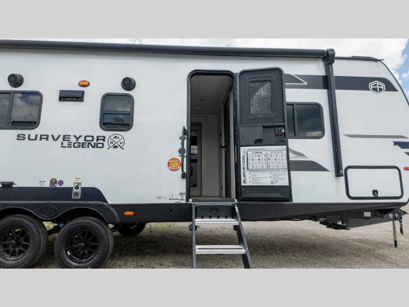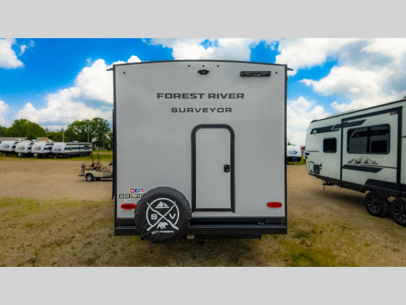 With any Surveyor Legend travel trailer by Forest River you will enjoy quality craftsmanship, convenient amenities, and at-home comforts. The Azdel composite walls provide a longer-lasting trailer, and the power tongue jack with a hitch light will get you back on the road in no-time. There are also Goodyear tires and a tire pressure monitoring system for hassle-free towing. Each model includes the Surveyor Legend Package that comes standard with oversized dinette storage access doors, front slam latch baggage doors, plus an automotive style tinted front windshield. You'll appreciate camping with a tankless water heater for endless hot showers, a 2" accessory hitch to bring bikes along, plus carpet-free interiors and a central vacuum system for easy clean up.