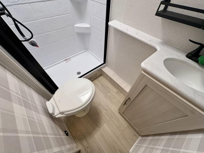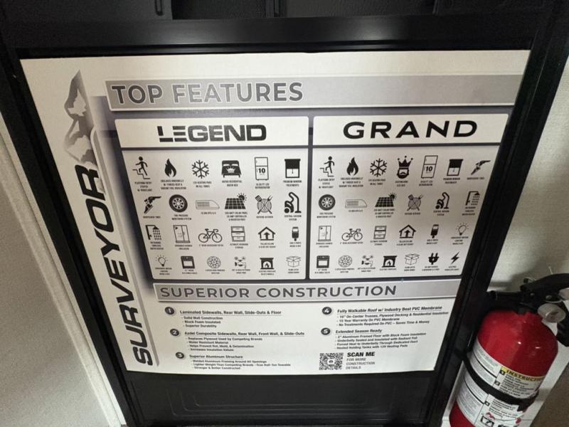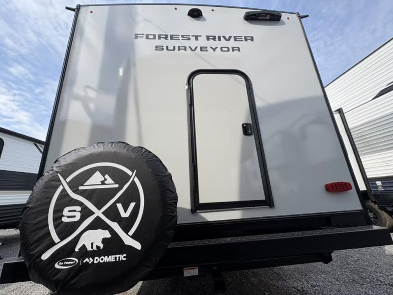 With any Surveyor Legend travel trailer by Forest River you will enjoy quality craftsmanship, convenient amenities, and at-home comforts. The Azdel composite walls provide a longer-lasting trailer, and the power tongue jack with a hitch light will get you back on the road in no-time. There are also Goodyear tires and a tire pressure monitoring system for hassle-free towing. Each model includes the Surveyor Legend Package that comes standard with oversized dinette storage access doors, front slam latch baggage doors, plus an automotive style tinted front windshield. You'll appreciate camping with a tankless water heater for endless hot showers, a 2" accessory hitch to bring bikes along, plus carpet-free interiors and a central vacuum system for easy clean up.
