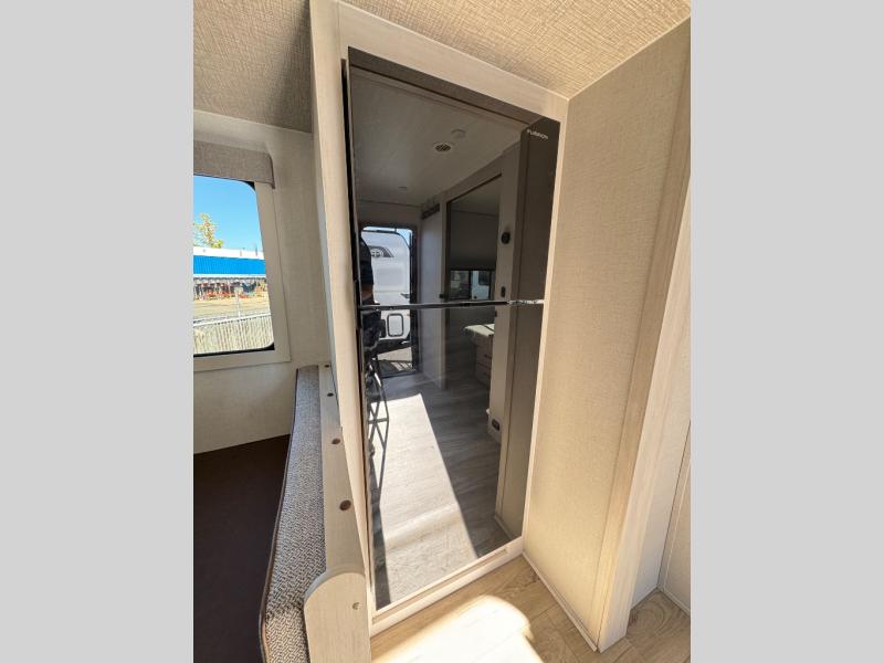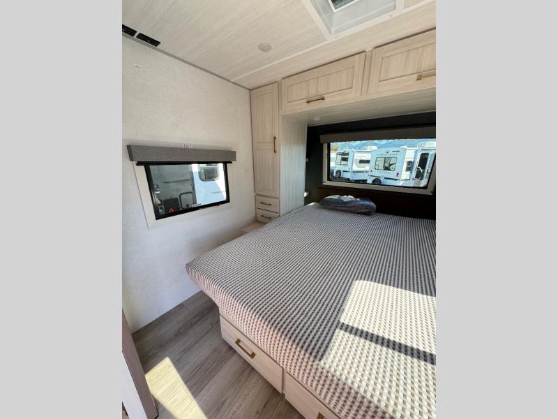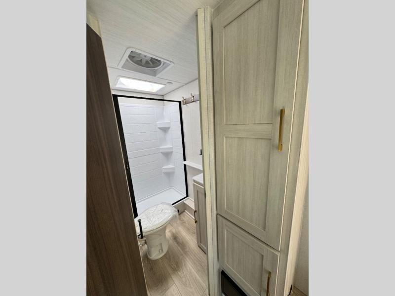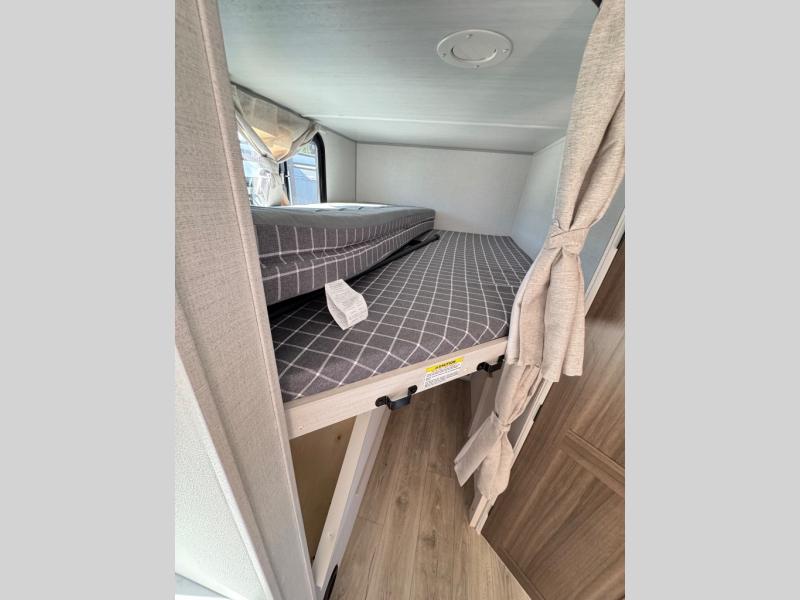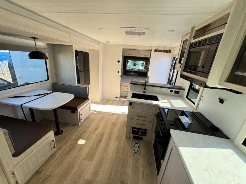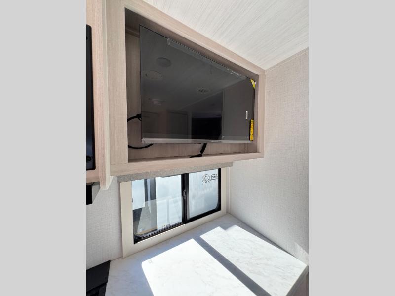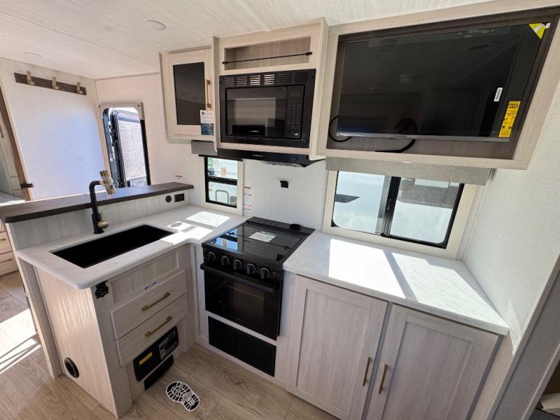 Every trip to the campground will be spent in comfort with this single slide out travel trailer. Once you arrive at the site, remove the kayaks or bikes from the rear storage door, start lunch on the outside kitchen, and put out the 15' power awning with LED lights. The interior includes a booth dinette slide with storage, a bar top with stools, plus an HD TV for movie nights. After a day of fun, head to the front private bedroom for a great night's rest on the queen bed, and you can store your belongings in the dual bedroom wardrobes!