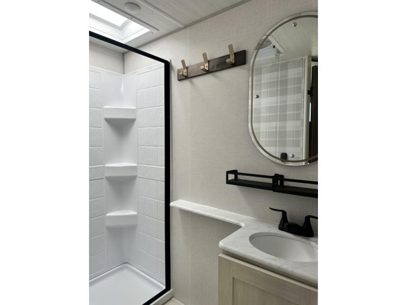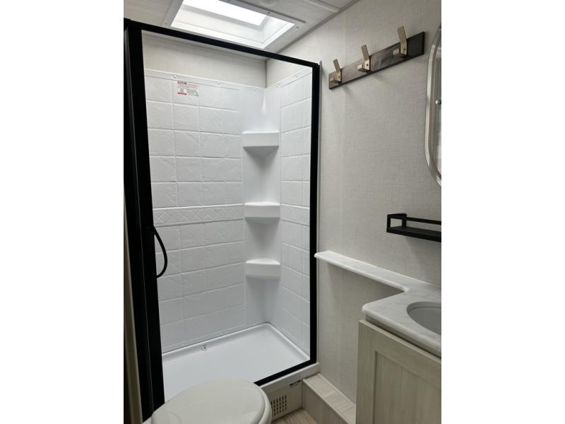With any Surveyor Legend travel trailer by Forest River you will enjoy quality craftsmanship, convenient amenities, and at-home comforts. The Azdel composite walls provide a longer-lasting trailer, and the power tongue jack with a hitch light will get you back on the road in no-time. There are also Goodyear tires and a tire pressure monitoring system for hassle-free towing. Each model includes the Surveyor Legend Package that comes standard with oversized dinette storage access doors, front slam latch baggage doors, plus an automotive style tinted front windshield. You'll appreciate camping with a tankless water heater for endless hot showers, a 2" accessory hitch to bring bikes along, plus carpet-free interiors and a central vacuum system for easy clean up.
