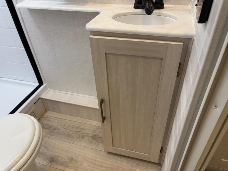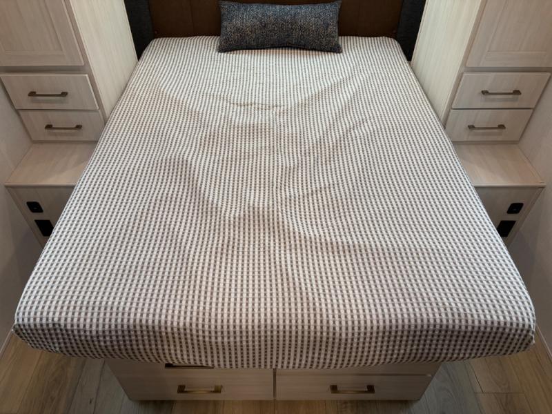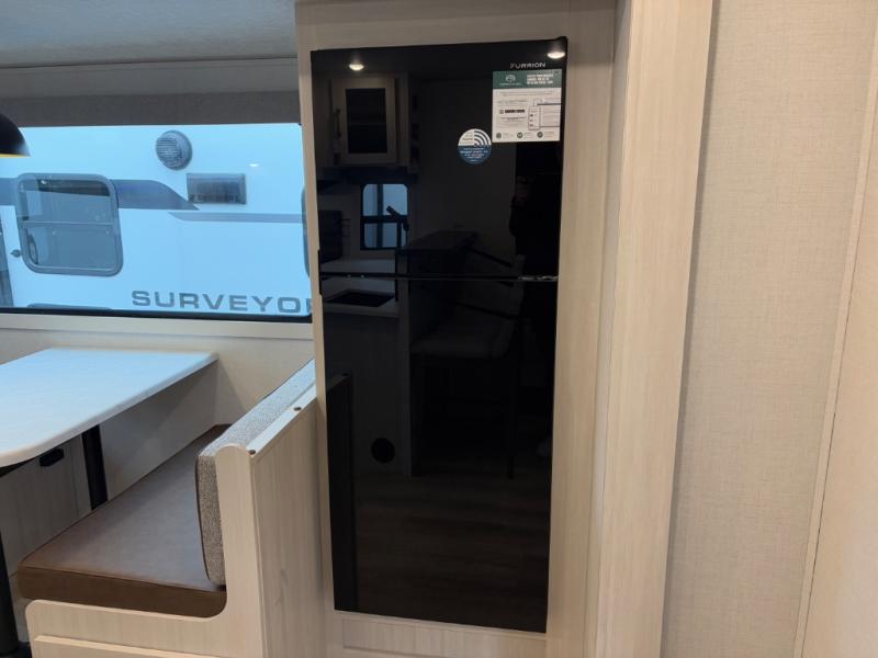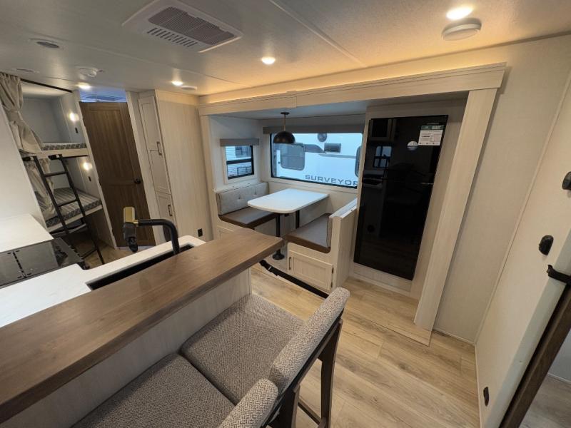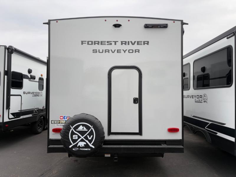 With any Surveyor Legend travel trailer by Forest River you will enjoy quality craftsmanship, convenient amenities, and at-home comforts. The Azdel composite walls provide a longer-lasting trailer, and the power tongue jack with a hitch light will get you back on the road in no-time. There are also Goodyear tires and a tire pressure monitoring system for hassle-free towing. Each model includes the Surveyor Legend Package that comes standard with oversized dinette storage access doors, front slam latch baggage doors, plus an automotive style tinted front windshield. You'll appreciate camping with a tankless water heater for endless hot showers, a 2" accessory hitch to bring bikes along, plus carpet-free interiors and a central vacuum system for easy clean up.