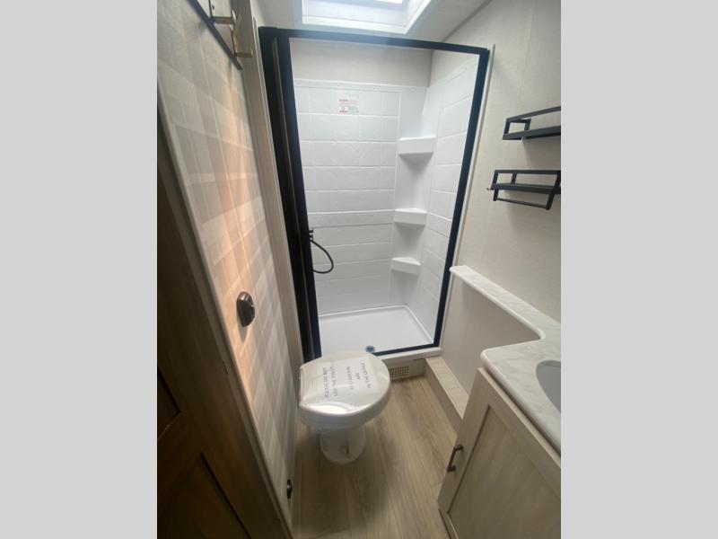 With any Surveyor Legend travel trailer by Forest River you will enjoy quality craftsmanship, convenient amenities, and at-home comforts. The Azdel composite walls provide a longer-lasting trailer, and the power tongue jack with hitch light makes getting back on the road quick and easy. There are also Goodyear® tires and a tire pressure monitoring system (TPMS) for more confident, hassle-free towing. Each model is built with thoughtful details like slam-latch exterior baggage doors and an automotive-style tinted front windshield that gives the front cap a sleek look while letting in natural light. You’ll appreciate camping with a tankless water heater for endless hot showers, a 2" rear accessory hitch to bring bikes or extra gear along, plus a central vacuum system that helps keep your easy-to-clean interior looking fresh.