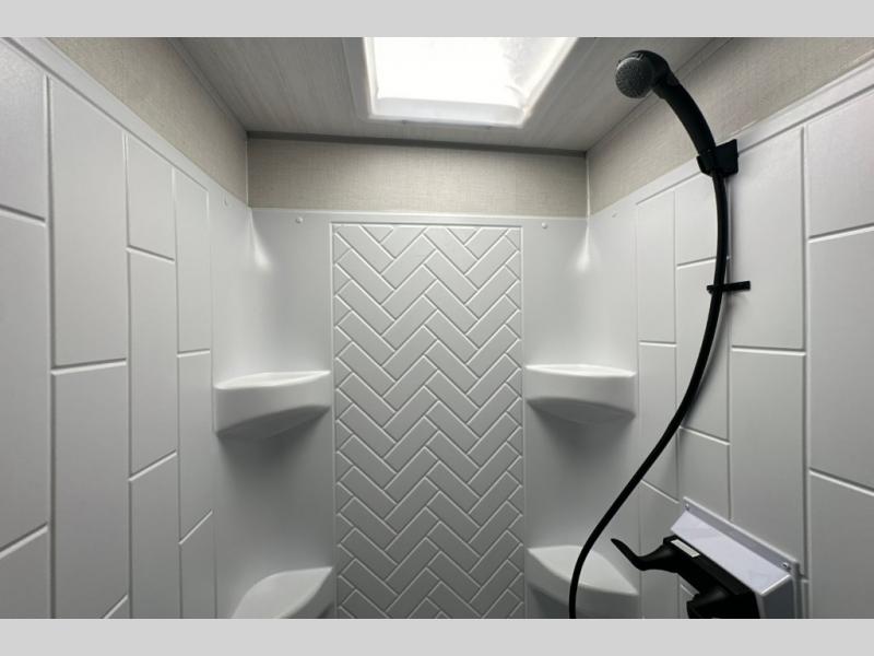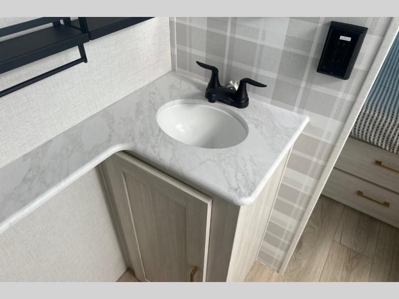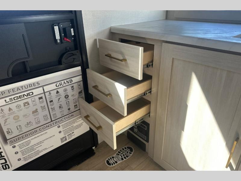 With any Surveyor Legend travel trailer by Forest River you will enjoy quality craftsmanship, convenient amenities, and at-home comforts. The Azdel composite walls provide a longer-lasting trailer, and the power tongue jack with a hitch light will get you back on the road in no-time. There are also Goodyear tires and a tire pressure monitoring system for hassle-free towing. Each model includes the Surveyor Legend Package that comes standard with oversized dinette storage access doors, front slam latch baggage doors, plus an automotive style tinted front windshield. You'll appreciate camping with a tankless water heater for endless hot showers, a 2" accessory hitch to bring bikes along, plus carpet-free interiors and a central vacuum system for easy clean up.