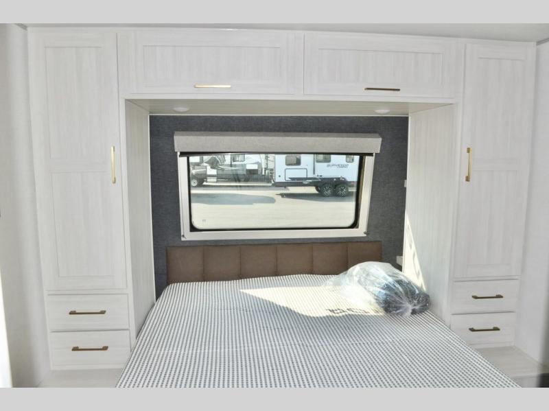 With any Surveyor Legend travel trailer by Forest River you will enjoy quality craftsmanship, convenient amenities, and at-home comforts. The Azdel composite walls provide a longer-lasting trailer, and the power tongue jack with a hitch light will get you back on the road in no-time. There are also Goodyear tires and a tire pressure monitoring system for hassle-free towing. Each model includes the Surveyor Legend Package that comes standard with oversized dinette storage access doors, front slam latch baggage doors, plus an automotive style tinted front windshield. You'll appreciate camping with a tankless water heater for endless hot showers, a 2" accessory hitch to bring bikes along, plus carpet-free interiors and a central vacuum system for easy clean up.
