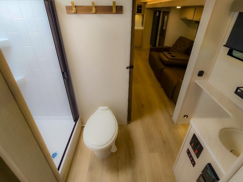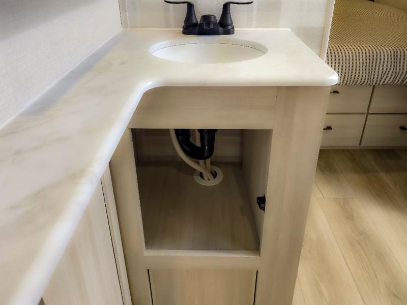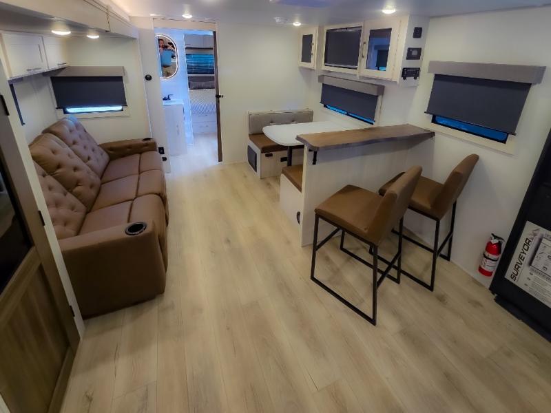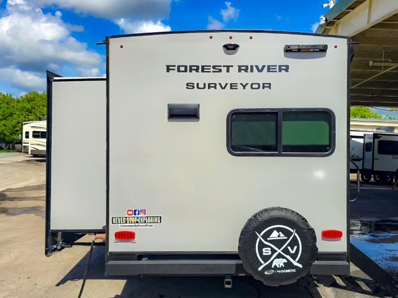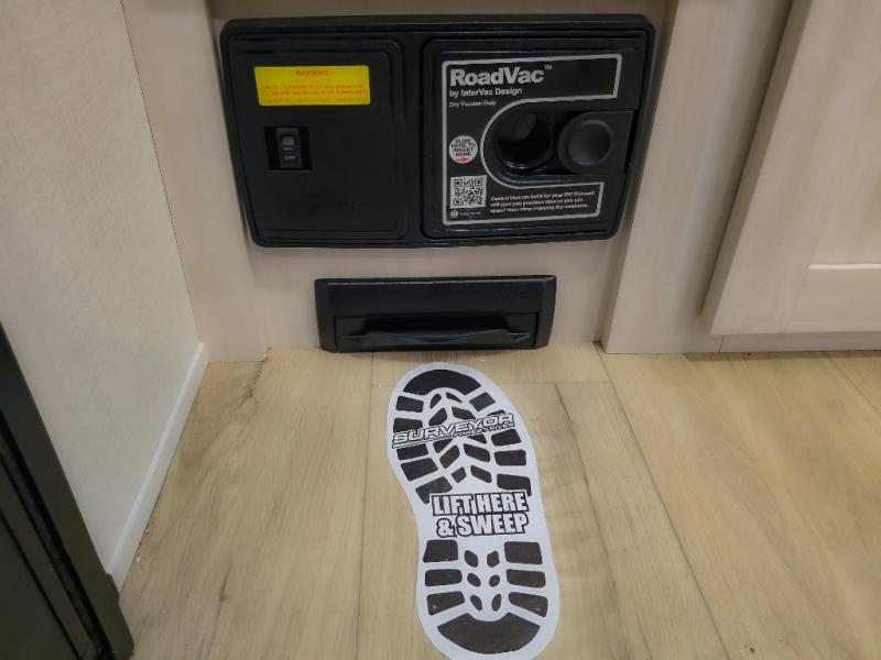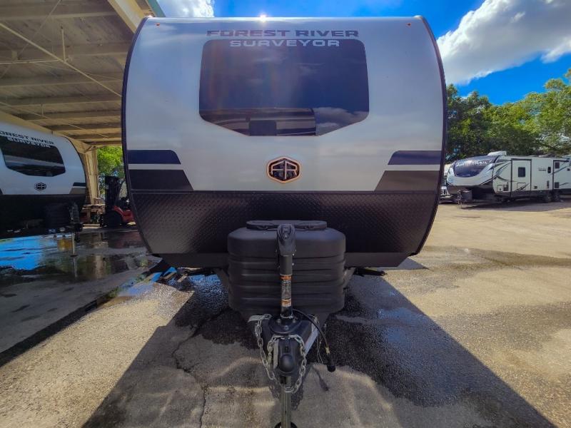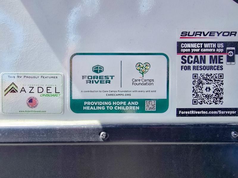 With any Surveyor Legend travel trailer by Forest River you will enjoy quality craftsmanship, convenient amenities, and at-home comforts. The Azdel composite walls provide a longer-lasting trailer, and the power tongue jack with a hitch light will get you back on the road in no-time. There are also Goodyear tires and a tire pressure monitoring system for hassle-free towing. Each model includes the Surveyor Legend Package that comes standard with oversized dinette storage access doors, front slam latch baggage doors, plus an automotive style tinted front windshield. You'll appreciate camping with a tankless water heater for endless hot showers, a 2" accessory hitch to bring bikes along, plus carpet-free interiors and a central vacuum system for easy clean up.