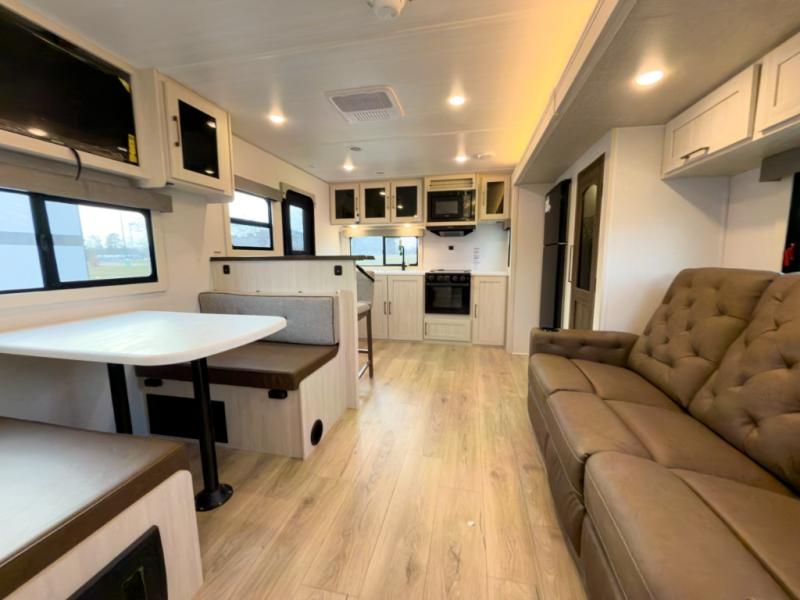 Michigan weekends deserve space that flows. The 261RKLE gives you a dedicated rear kitchen and open slide living area without pushing past manageable tow size.