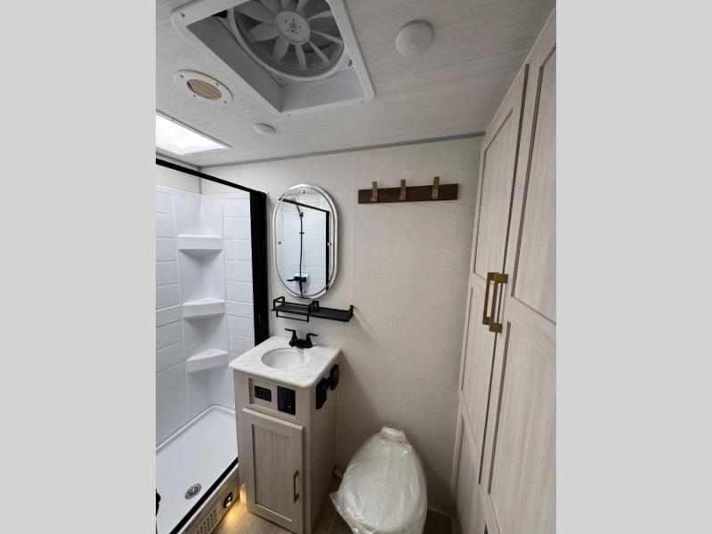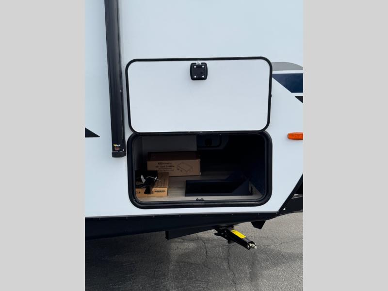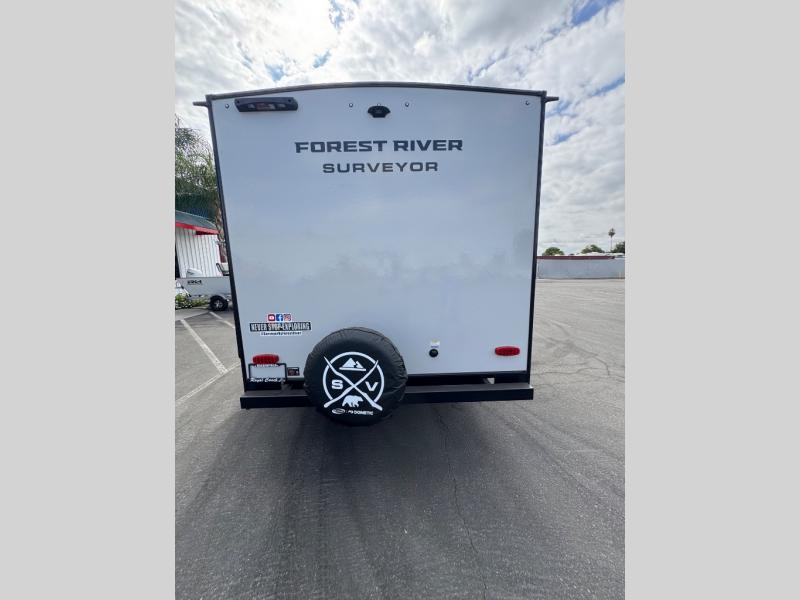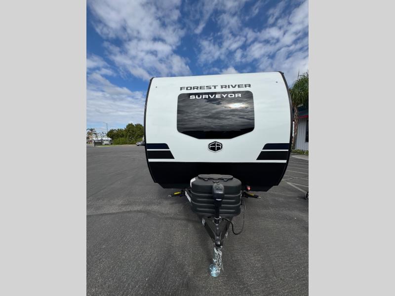 With any Surveyor Legend travel trailer by Forest River you will enjoy quality craftsmanship, convenient amenities, and at-home comforts. The Azdel composite walls provide a longer-lasting trailer, and the power tongue jack with a hitch light will get you back on the road in no-time. There are also Goodyear tires and a tire pressure monitoring system for hassle-free towing. Each model includes the Surveyor Legend Package that comes standard with oversized dinette storage access doors, front slam latch baggage doors, plus an automotive style tinted front windshield. You'll appreciate camping with a tankless water heater for endless hot showers, a 2" accessory hitch to bring bikes along, plus carpet-free interiors and a central vacuum system for easy clean up.
