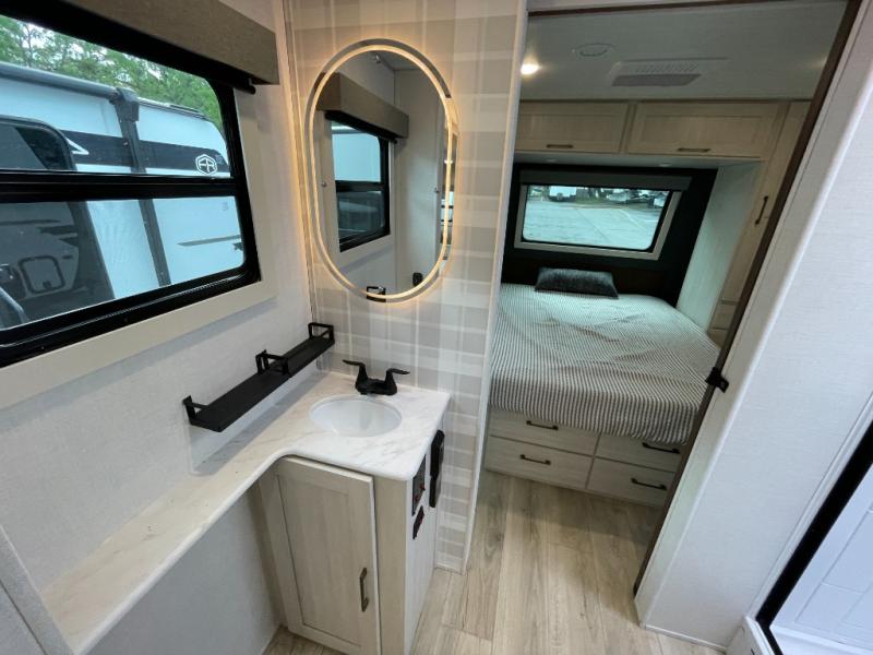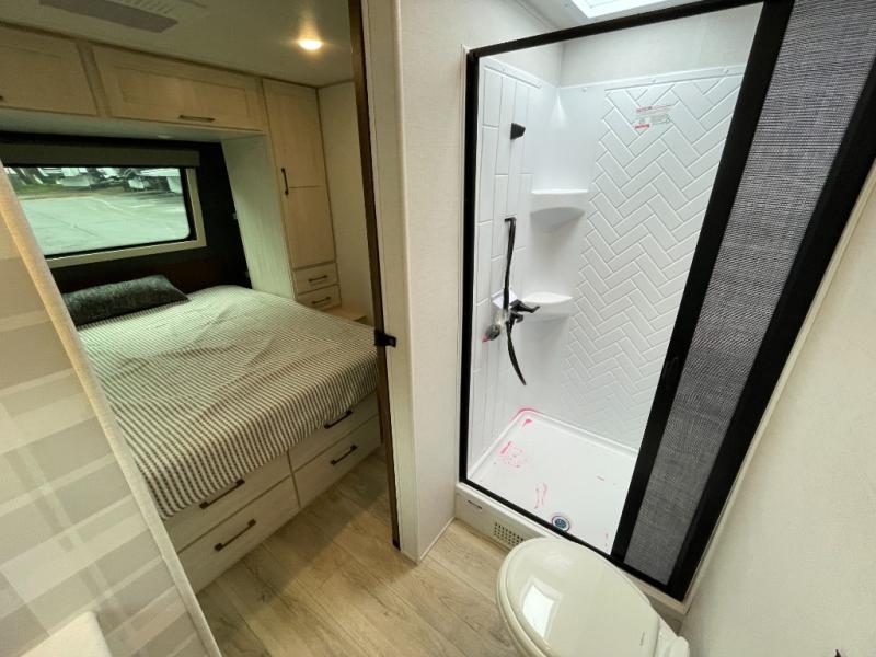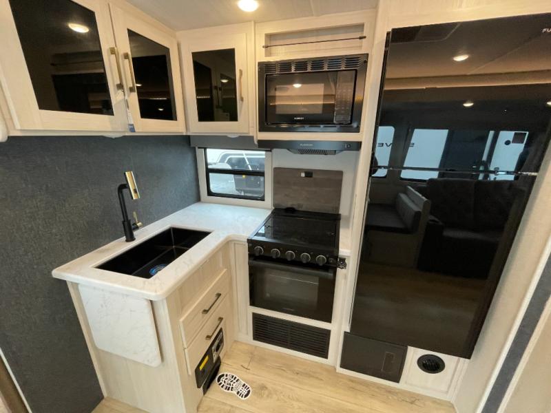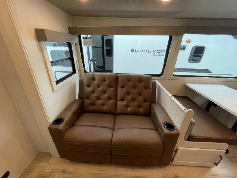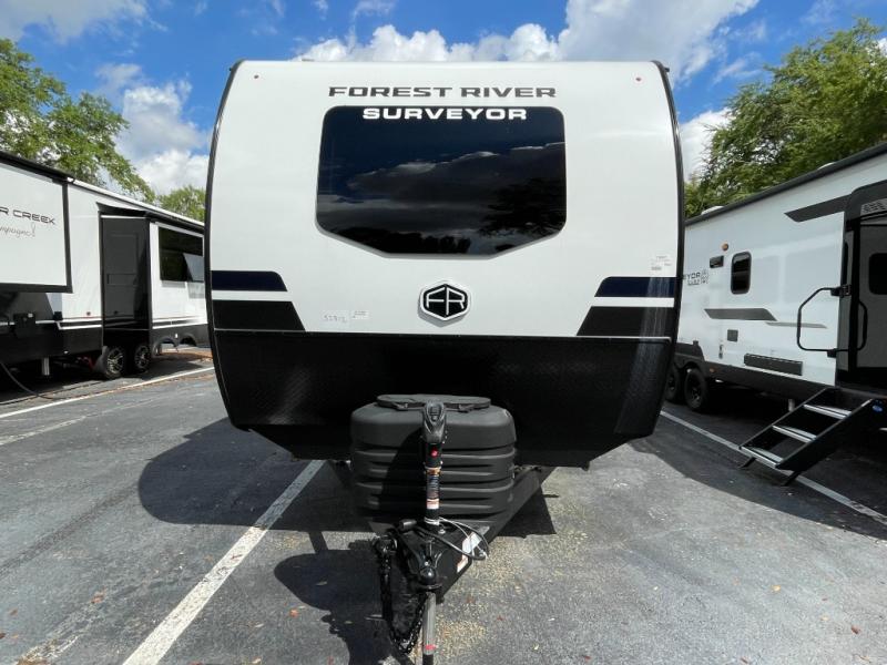 With any Surveyor Legend travel trailer by Forest River you will enjoy quality craftsmanship, convenient amenities, and at-home comforts. The Azdel composite walls provide a longer-lasting trailer, and the power tongue jack with a hitch light will get you back on the road in no-time. There are also Goodyear tires and a tire pressure monitoring system for hassle-free towing. Each model includes the Surveyor Legend Package that comes standard with oversized dinette storage access doors, front slam latch baggage doors, plus an automotive style tinted front windshield. You'll appreciate camping with a tankless water heater for endless hot showers, a 2" accessory hitch to bring bikes along, plus carpet-free interiors and a central vacuum system for easy clean up.