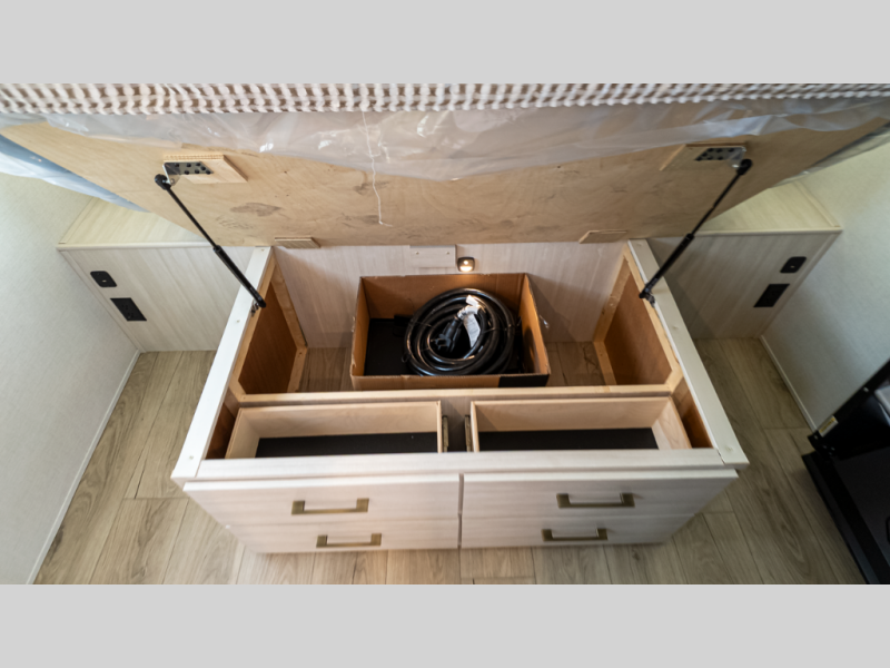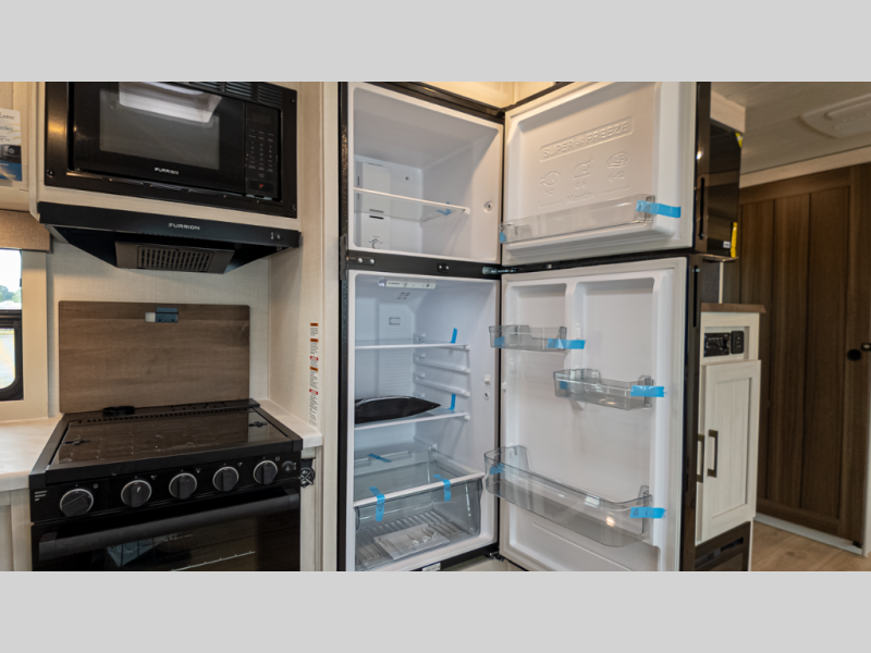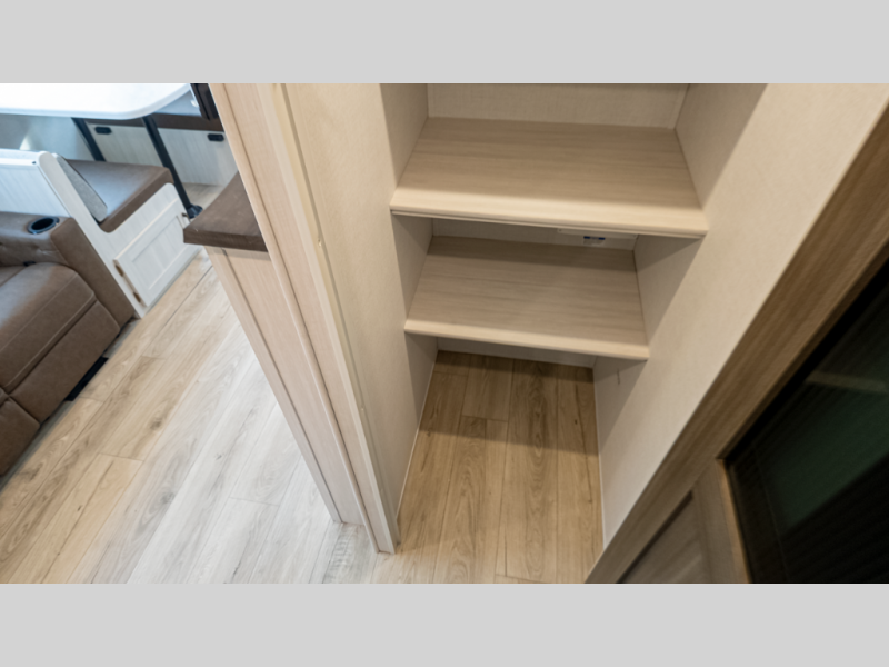 - Walk-in pantry, theater seating, 10 cu-ft 12 V black-glass fridge