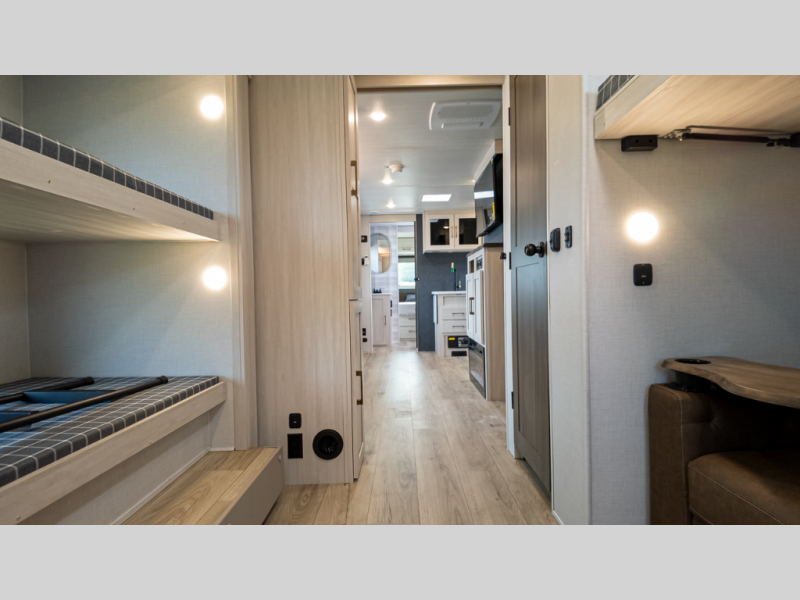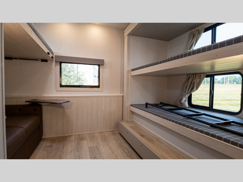 This bunkhouse layout gives Michigan families room and flexibility—built for lakeside trips, fall tours, or holiday gatherings without excessive tow length.