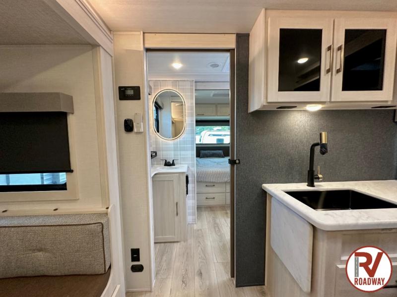 With any Surveyor Legend travel trailer by Forest River you will enjoy quality craftsmanship, convenient amenities, and at-home comforts. The Azdel composite walls provide a longer-lasting trailer, and the power tongue jack with a hitch light will get you back on the road in no-time. There are also Goodyear tires and a tire pressure monitoring system for hassle-free towing. Each model includes the Surveyor Legend Package that comes standard with oversized dinette storage access doors, front slam latch baggage doors, plus an automotive style tinted front windshield. You'll appreciate camping with a tankless water heater for endless hot showers, a 2" accessory hitch to bring bikes along, plus carpet-free interiors and a central vacuum system for easy clean up.