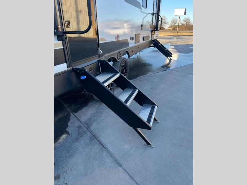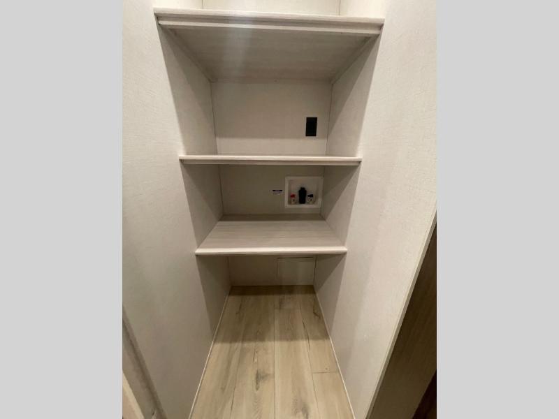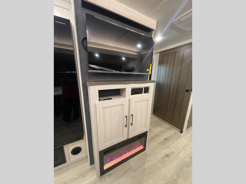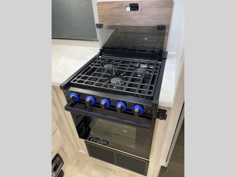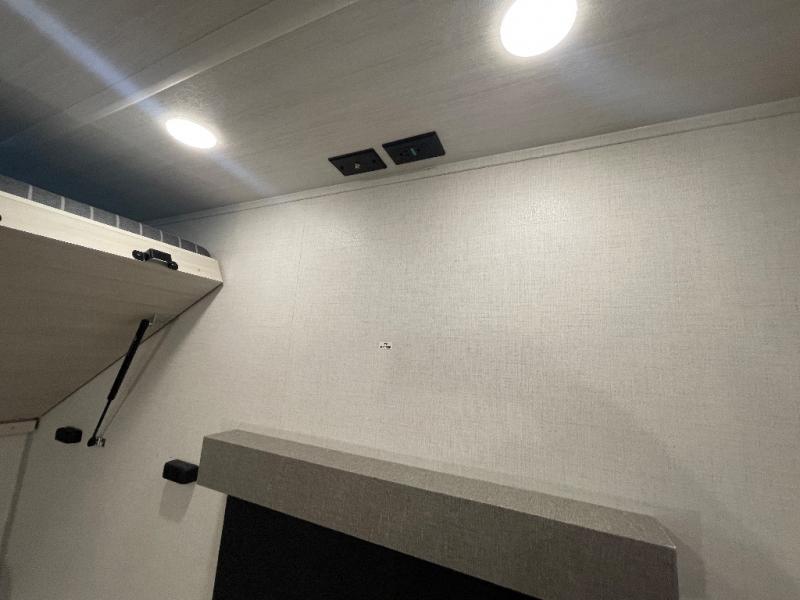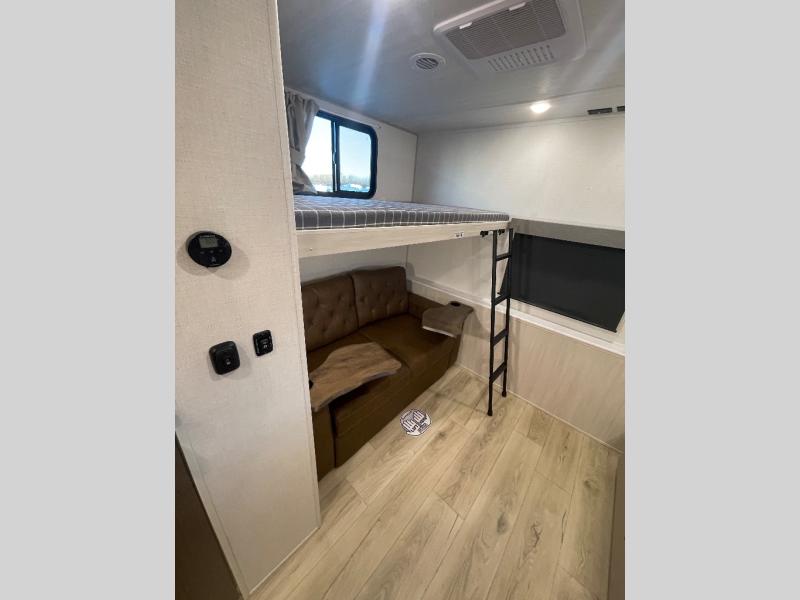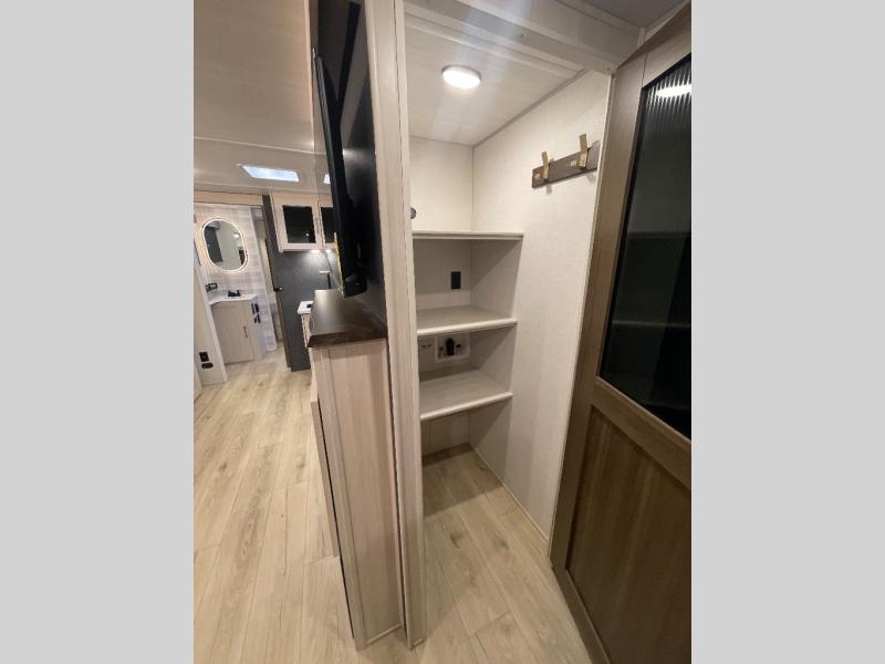 This travel trailer is perfect for larger groups or families since it can sleep up to ten people each night! There is a private bunkhouse with three bunks, a EZ-out sofa, plus storage space and a removable table! The front master bedroom is just as accommodating with its dual bedroom wardrobes, overhead cabinets, and quick access to the walk-through bath. The main living are will be a favorite hangout spot with a tri-fold sofa, a booth dinette, and an HD TV for movies. And a walk-in pantry with washer and dryer prep gives you the option to add these appliances. The chef of your group can cook meals in the fully-equipped kitchen, or head outdoors to cook on the outside kitchen. There is also a 21' electric awning here with LED lights for an inviting outdoor living space.