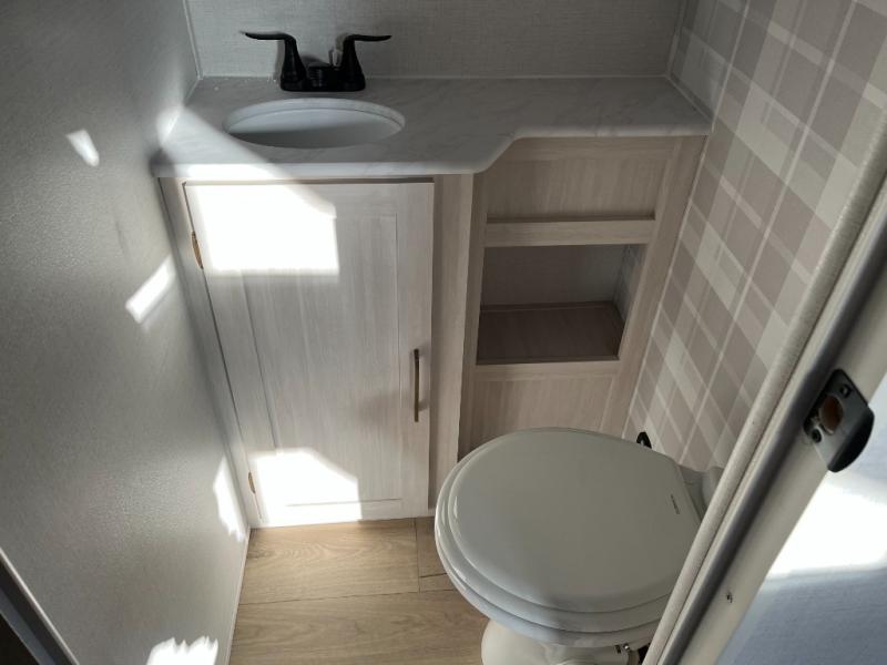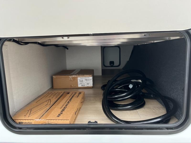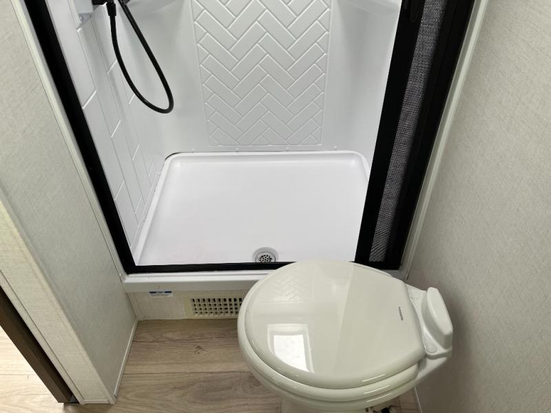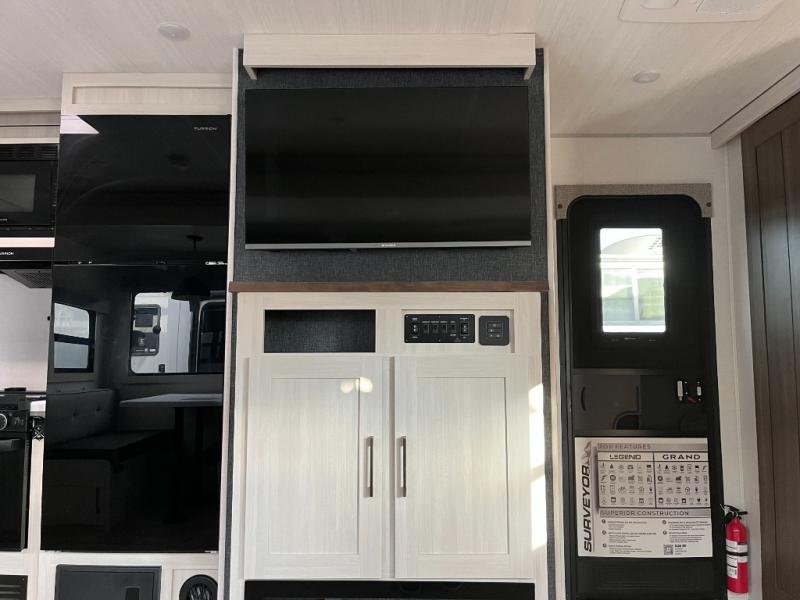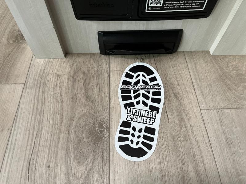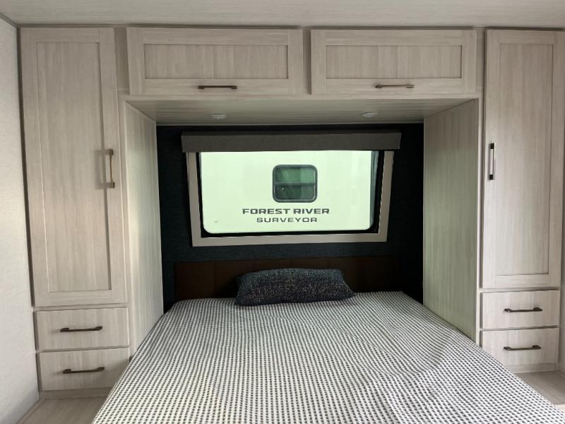 With any Surveyor Legend travel trailer by Forest River you will enjoy quality craftsmanship, convenient amenities, and at-home comforts. The Azdel composite walls provide a longer-lasting trailer, and the power tongue jack with a hitch light will get you back on the road in no-time. There are also Goodyear tires and a tire pressure monitoring system for hassle-free towing. Each model includes the Surveyor Legend Package that comes standard with oversized dinette storage access doors, front slam latch baggage doors, plus an automotive style tinted front windshield. You'll appreciate camping with a tankless water heater for endless hot showers, a 2" accessory hitch to bring bikes along, plus carpet-free interiors and a central vacuum system for easy clean up.