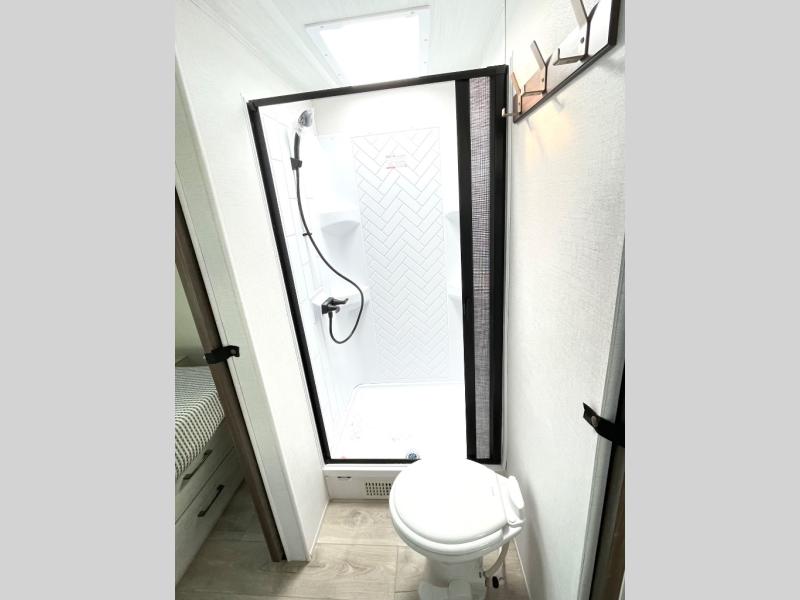 With any Surveyor Legend travel trailer by Forest River you will enjoy quality craftsmanship, convenient amenities, and at-home comforts. The Azdel composite walls provide a longer-lasting trailer, and the power tongue jack with a hitch light will get you back on the road in no-time. There are also Goodyear tires and a tire pressure monitoring system for hassle-free towing. Each model includes the Surveyor Legend Package that comes standard with oversized dinette storage access doors, front slam latch baggage doors, plus an automotive style tinted front windshield. You'll appreciate camping with a tankless water heater for endless hot showers, a 2" accessory hitch to bring bikes along, plus carpet-free interiors and a central vacuum system for easy clean up.