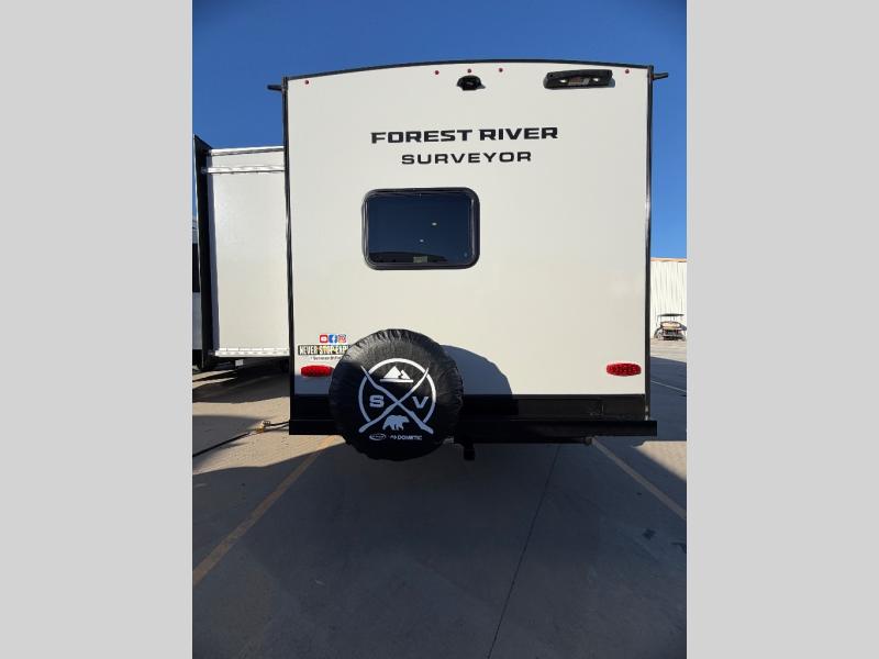 With any Surveyor Legend travel trailer by Forest River you will enjoy quality craftsmanship, convenient amenities, and at-home comforts. The Azdel composite walls provide a longer-lasting trailer, and the power tongue jack with a hitch light will get you back on the road in no-time. There are also Goodyear tires and a tire pressure monitoring system for hassle-free towing. Each model includes the Surveyor Legend Package that comes standard with oversized dinette storage access doors, front slam latch baggage doors, plus an automotive style tinted front windshield. You'll appreciate camping with a tankless water heater for endless hot showers, a 2" accessory hitch to bring bikes along, plus carpet-free interiors and a central vacuum system for easy clean up.