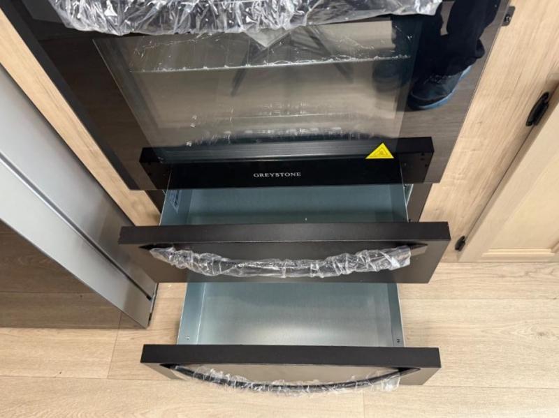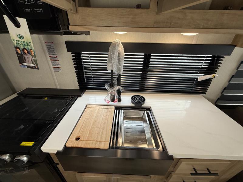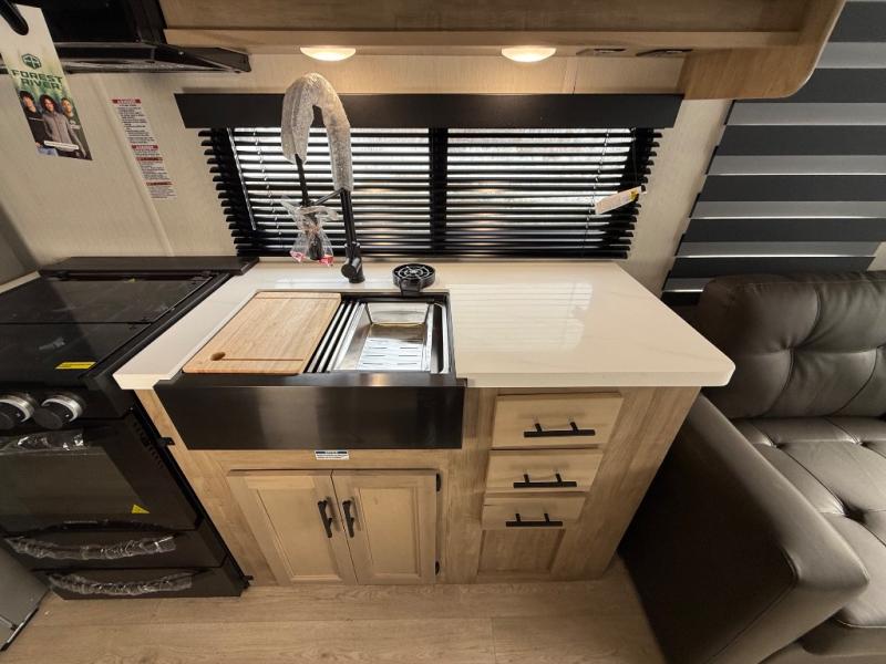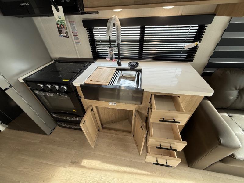 Enjoy comforts of home wherever you decide to roam in a Timberwolf destination trailer by Forest River. The seamless roofing membrane with heat reflectivity and power gear frame technology provide a durable foundation to your RV. You will also appreciate the exclusive solar thermo controlled reflective tinted safety glass windows, tire pressure monitors, and an on-demand tankless water heater to make extended stays easier than ever. Inside, the night shades will provide your crew with privacy, while the LED lights illuminate your space. There are also seamless countertops, along with a premium bedding ensemble and comforter, USB charging stations, a supersized central A/C unit, and many more comforts!