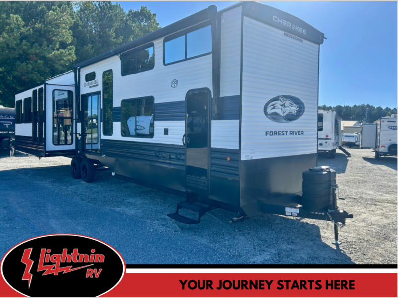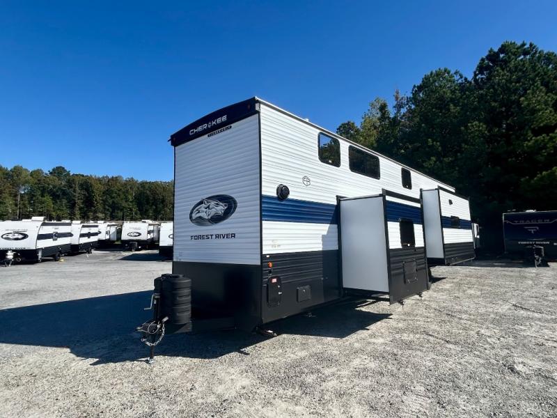Enjoy comforts of home wherever you decide to roam in a Cherokee Timberwolf destination trailer by Forest River. Each trailer is made with quality construction materials, like with all Forest River products, plus you'll find convenient exterior features to make extended stays easier than ever. You will love the interior with its cozy sleeping arrangements, full bath and kitchen amenities, plus plenty of storage spaces for food, clothing, gear and more! With mini loft and full-size destination trailers available, you're sure to find a Cherokee Timberwolf that fits your needs!