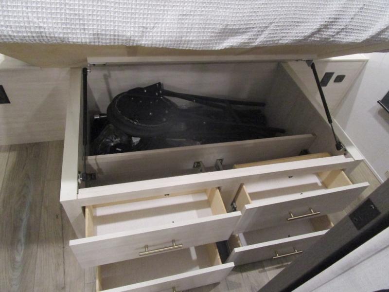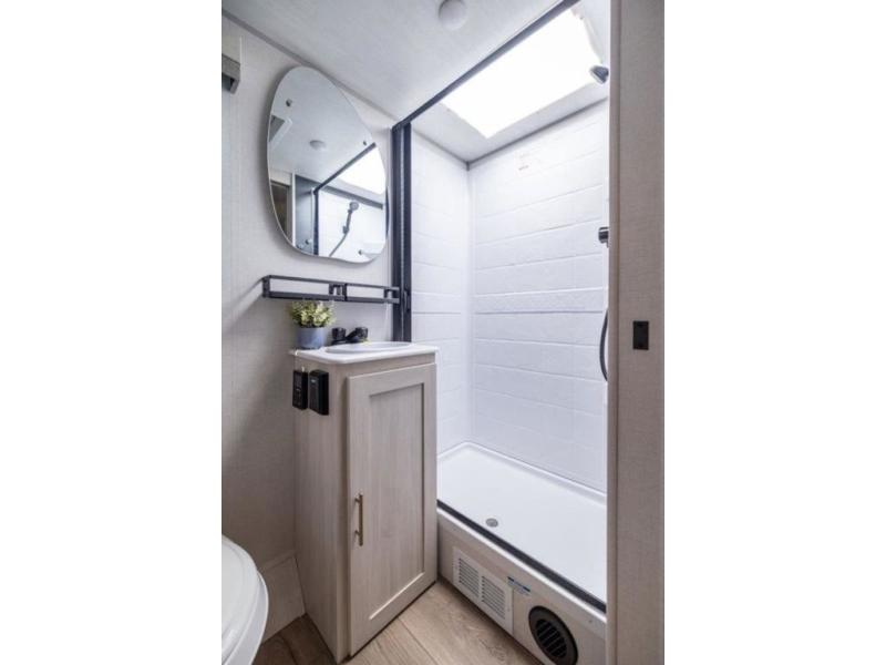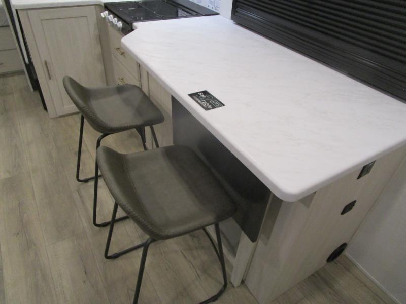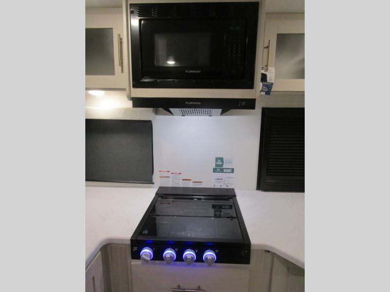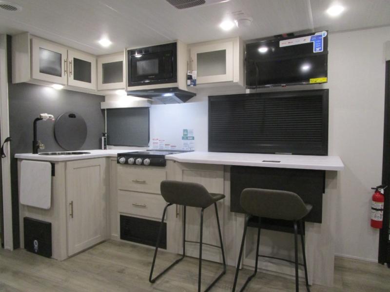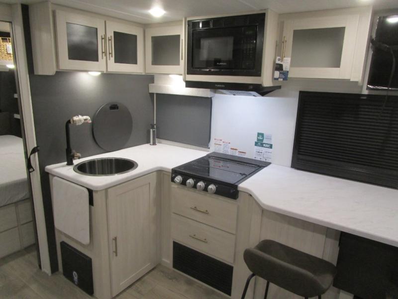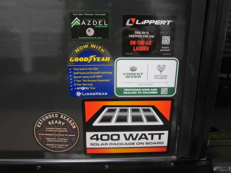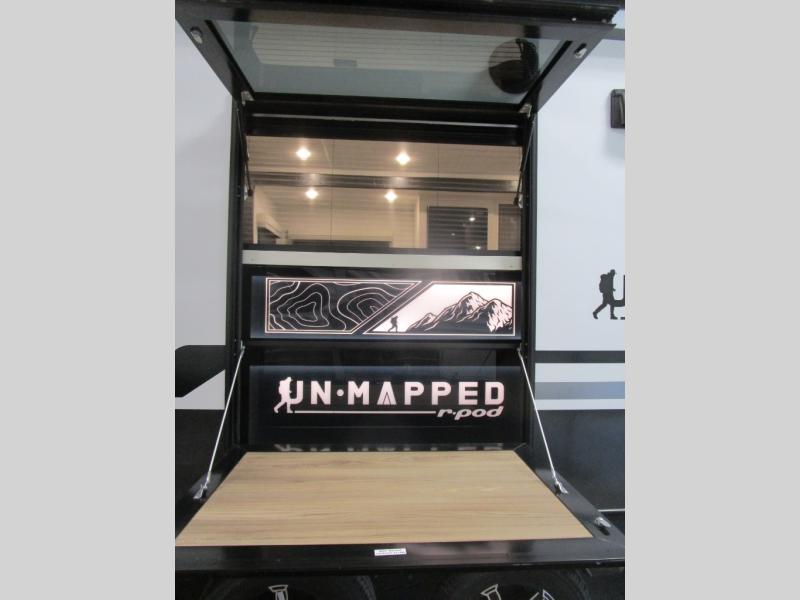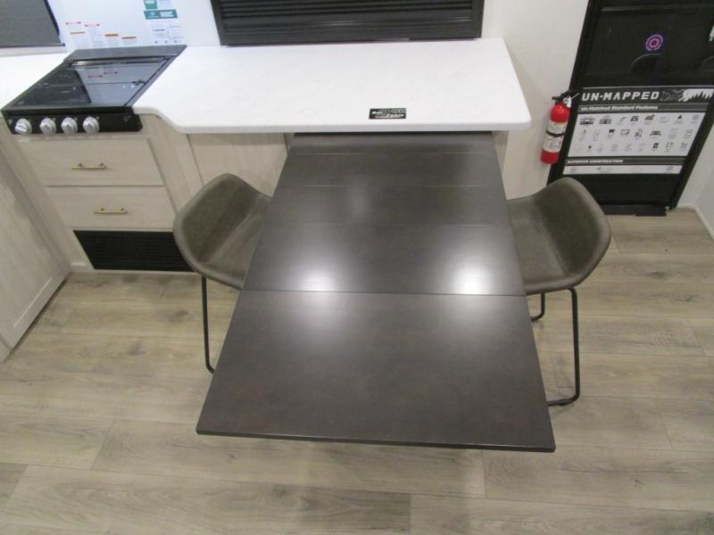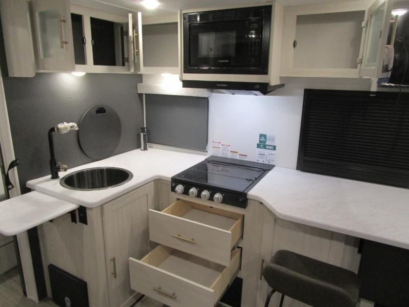 The Forest River Un-Mapped travel trailers deliver an unparalleled travel experience thanks to their incredible features, starting with the aluminum-framed floor with block foam insulation that ensures exceptional structural integrity and thermal efficiency, along with the sealed underbelly with forced heat & radiant foil barrier that provides superior insulation and heat management, and the power tongue jack facilitates easy maneuvering and stabilization of the trailer. Plus, the 30 Amp charge controller with solar inverter prep is ready for integration with solar power systems, catering to eco-conscious travelers seeking off-grid capabilities. Inside, you will find seamless Surf-X kitchen countertops that offer a sleek, durable surface and are easy to maintain for busy travelers. Further, the blackout roller shades will add privacy and light control for restful nights and cozy daytime retreats.