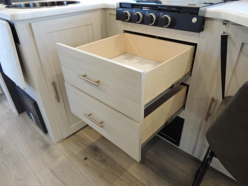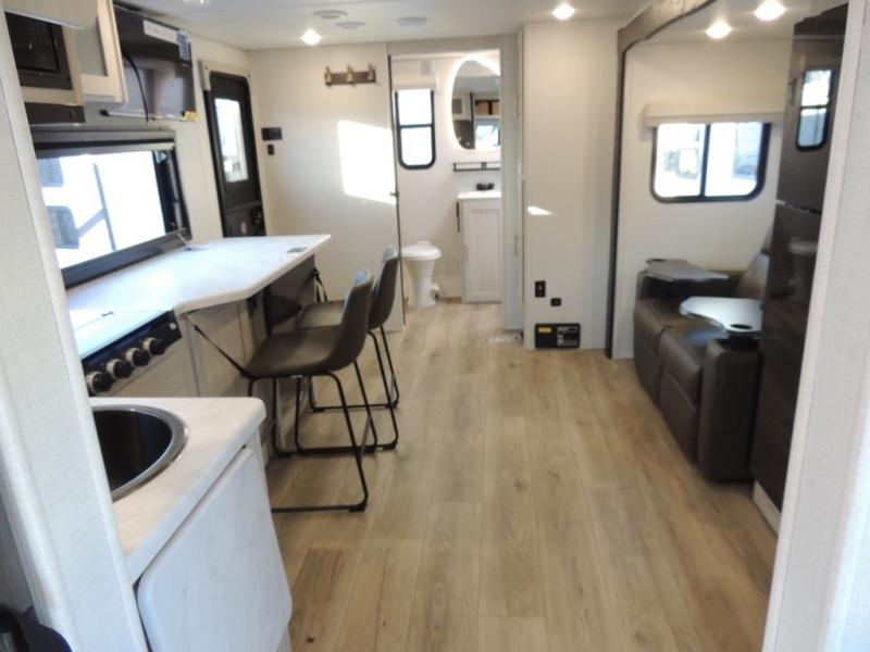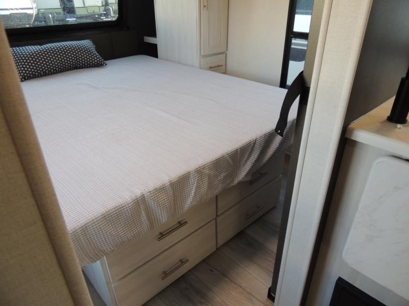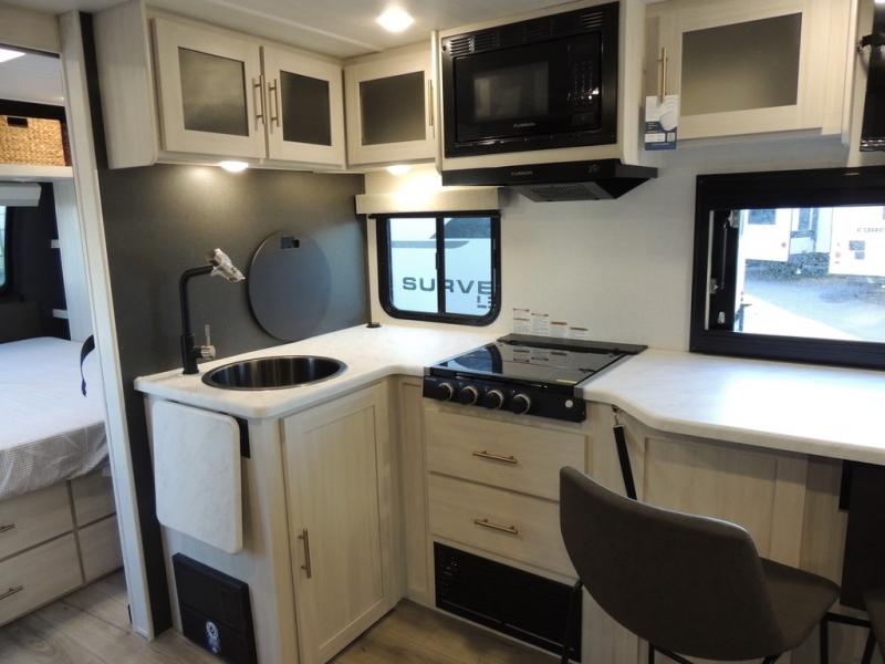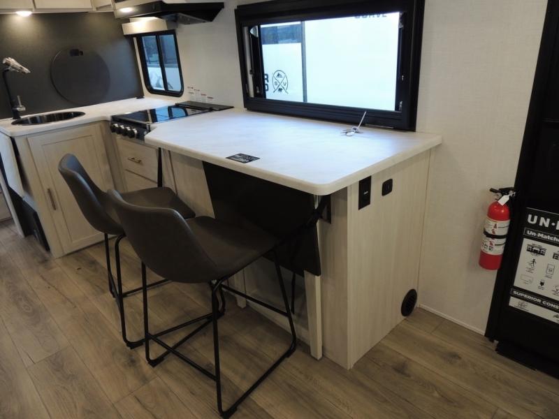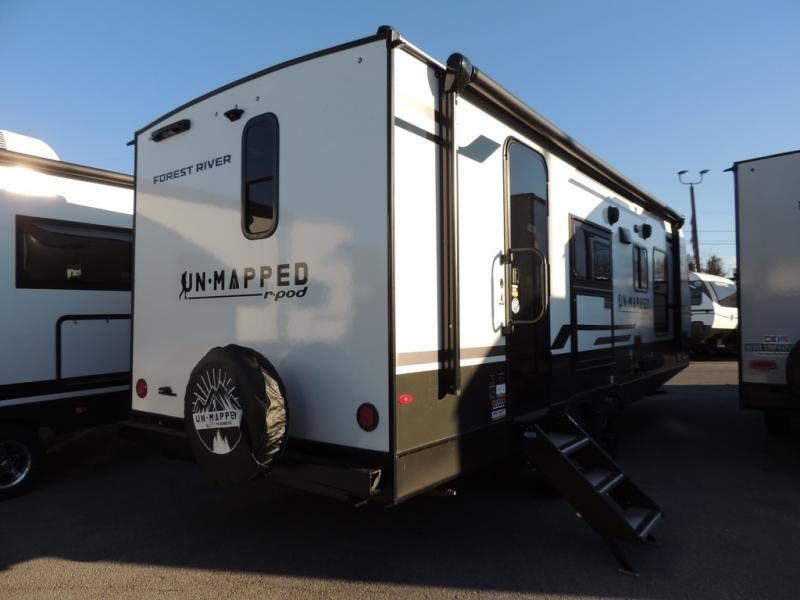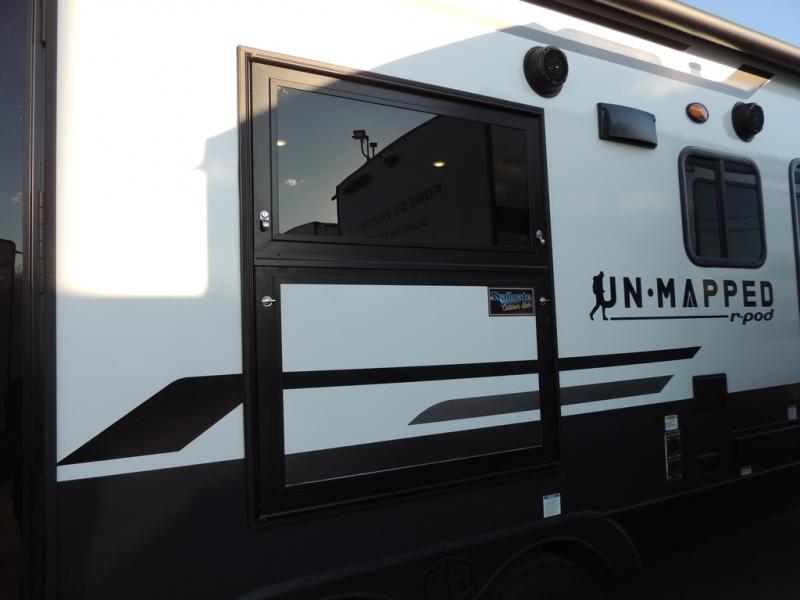 The Forest River Un-Mapped travel trailers deliver an unparalleled travel experience thanks to their incredible features, starting with the aluminum-framed floor with block foam insulation that ensures exceptional structural integrity and thermal efficiency, along with the sealed underbelly with forced heat & radiant foil barrier that provides superior insulation and heat management, and the power tongue jack facilitates easy maneuvering and stabilization of the trailer. Plus, the 30 Amp charge controller with solar inverter prep is ready for integration with solar power systems, catering to eco-conscious travelers seeking off-grid capabilities. Inside, you will find seamless Surf-X kitchen countertops that offer a sleek, durable surface and are easy to maintain for busy travelers. Further, the blackout roller shades will add privacy and light control for restful nights and cozy daytime retreats.
