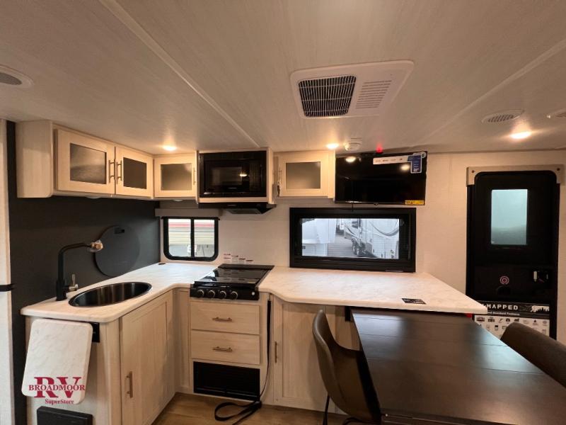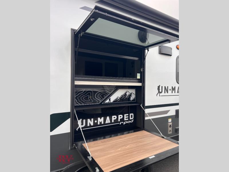 The Forest River Un-Mapped travel trailers deliver an unparalleled travel experience thanks to their incredible features, starting with the aluminum-framed floor with block foam insulation that ensures exceptional structural integrity and thermal efficiency, along with the sealed underbelly with forced heat & radiant foil barrier that provides superior insulation and heat management, and the power tongue jack facilitates easy maneuvering and stabilization of the trailer. Plus, the 30 Amp charge controller with solar inverter prep is ready for integration with solar power systems, catering to eco-conscious travelers seeking off-grid capabilities. Inside, you will find seamless Surf-X kitchen countertops that offer a sleek, durable surface and are easy to maintain for busy travelers. Further, the blackout roller shades will add privacy and light control for restful nights and cozy daytime retreats.
