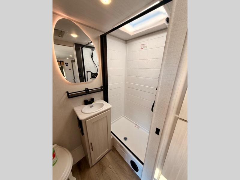 The Forest River Un-Mapped travel trailers deliver an unparalleled travel experience thanks to their incredible features, starting with the aluminum-framed floor with block foam insulation that ensures exceptional structural integrity and thermal efficiency, along with the sealed underbelly with forced heat & radiant foil barrier that provides superior insulation and heat management, and the power tongue jack facilitates easy maneuvering and stabilization of the trailer. Plus, the 30 Amp charge controller with solar inverter prep is ready for integration with solar power systems, catering to eco-conscious travelers seeking off-grid capabilities. Inside, you will find seamless Surf-X kitchen countertops that offer a sleek, durable surface and are easy to maintain for busy travelers. Further, the blackout roller shades will add privacy and light control for restful nights and cozy daytime retreats.