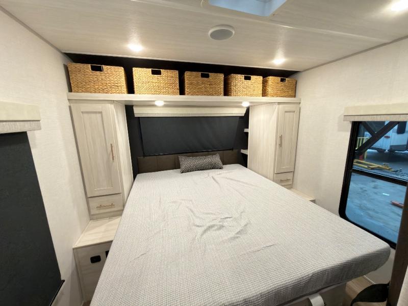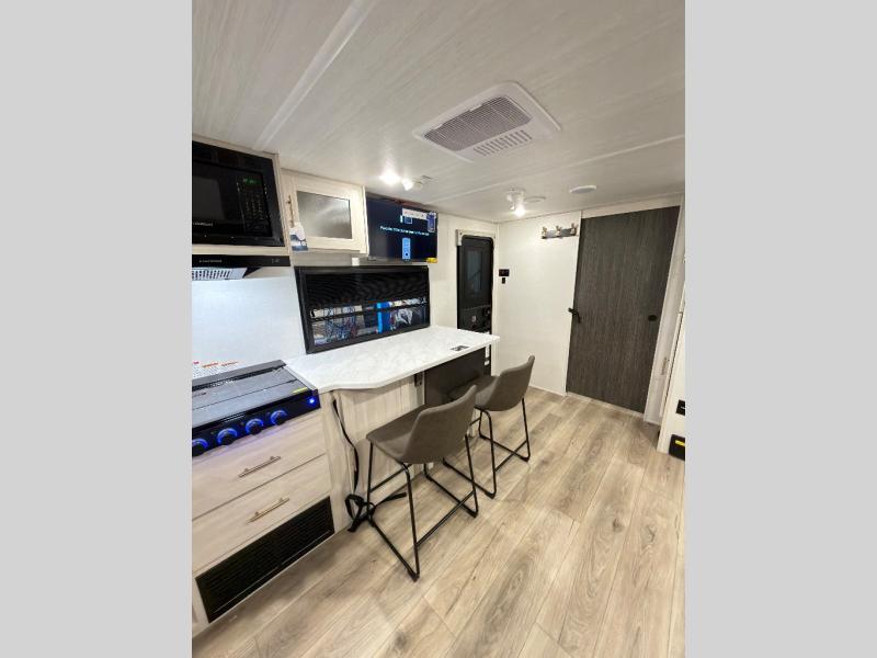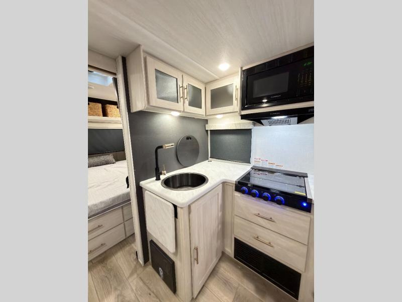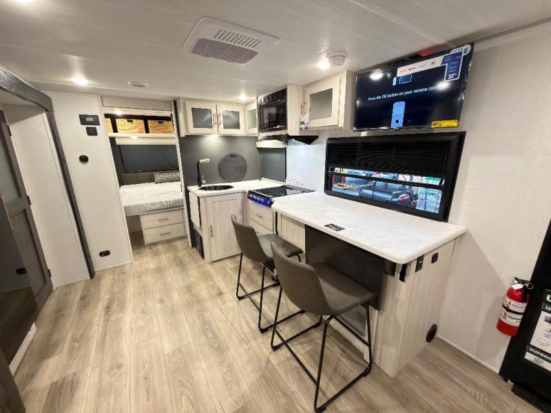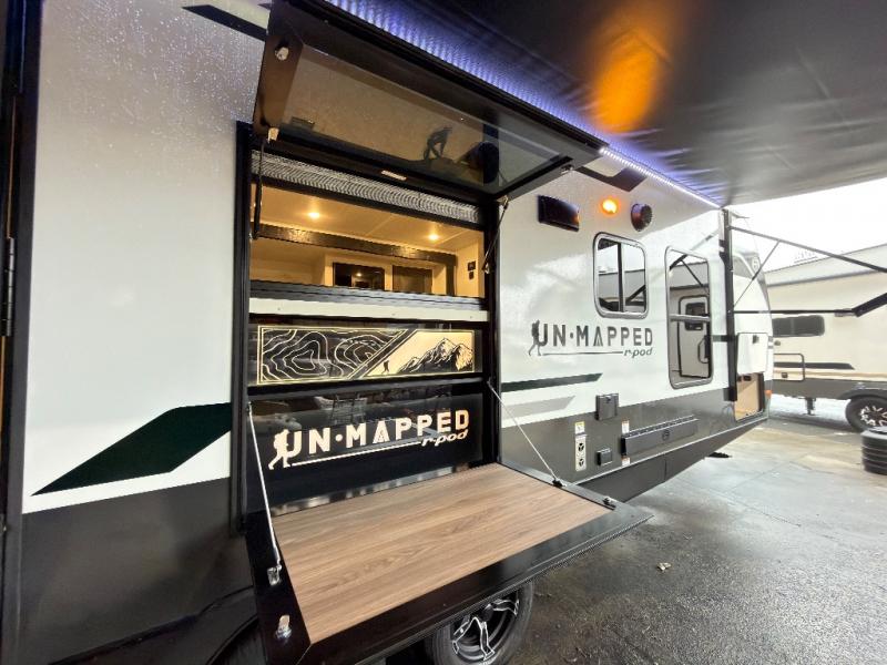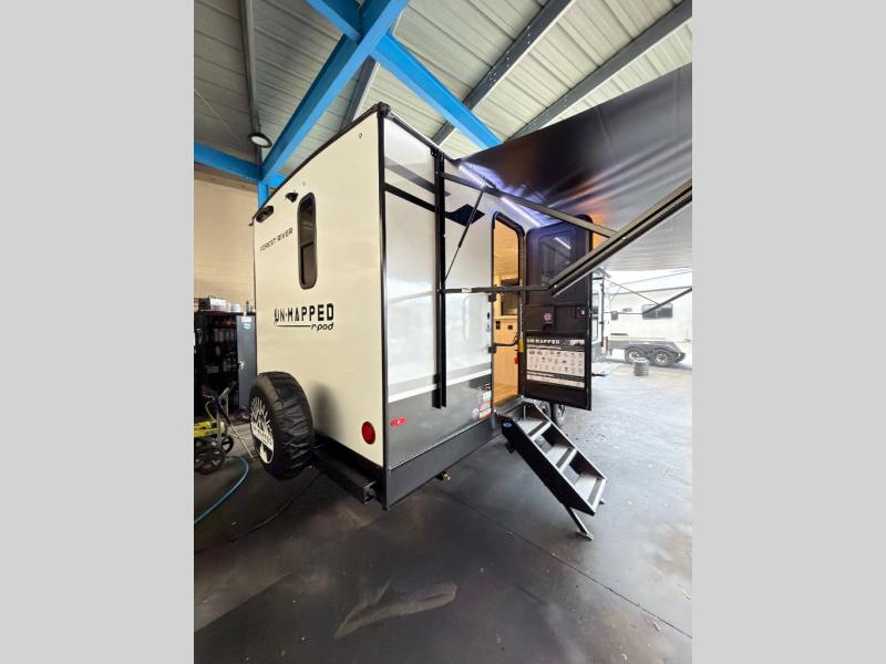 The Forest River Un-Mapped travel trailers deliver an unparalleled travel experience thanks to their incredible features, starting with the aluminum-framed floor with block foam insulation that ensures exceptional structural integrity and thermal efficiency, along with the sealed underbelly with forced heat & radiant foil barrier that provides superior insulation and heat management, and the power tongue jack facilitates easy maneuvering and stabilization of the trailer. Plus, the 30 Amp charge controller with solar inverter prep is ready for integration with solar power systems, catering to eco-conscious travelers seeking off-grid capabilities. Inside, you will find seamless Surf-X kitchen countertops that offer a sleek, durable surface and are easy to maintain for busy travelers. Further, the blackout roller shades will add privacy and light control for restful nights and cozy daytime retreats.