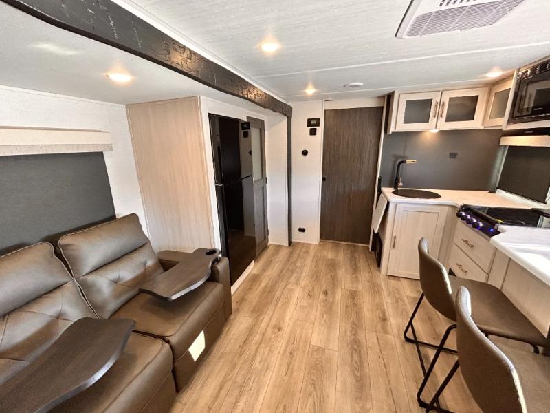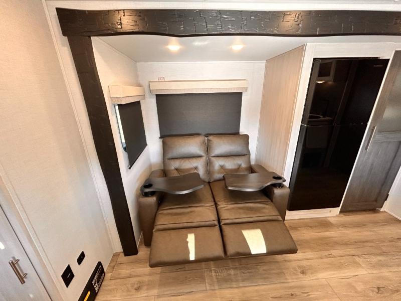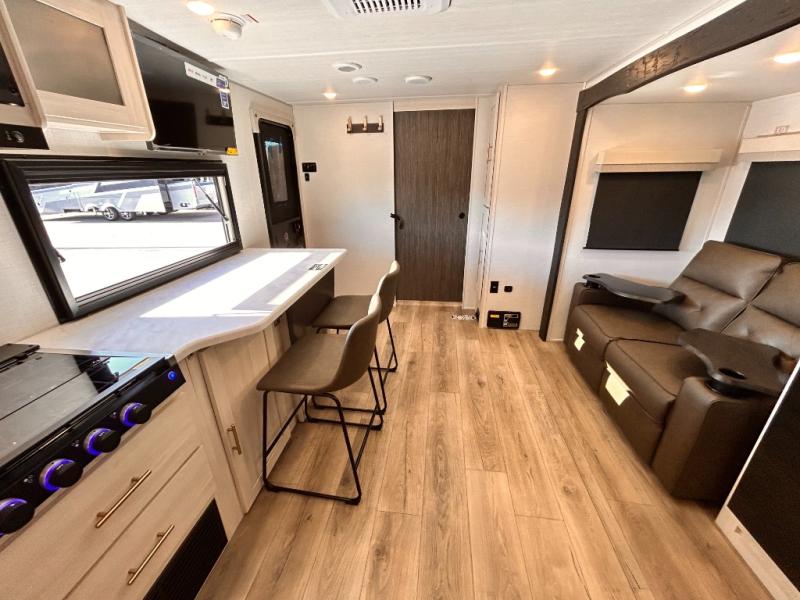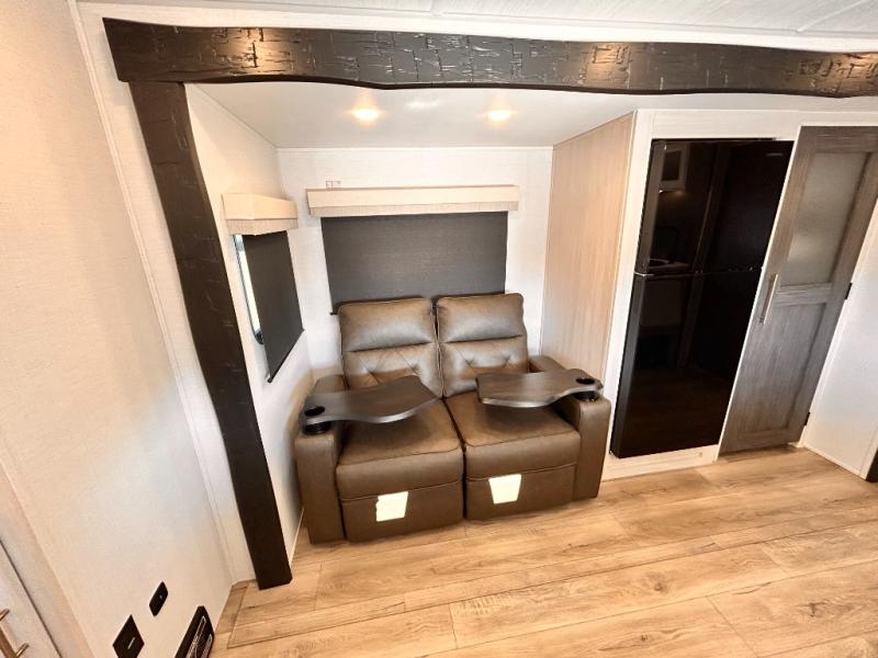 REAR BATH / OUTDOR KITCHEN / TAILGATE BAR TOP WITH 2 CHAIR / PUL OUT DINETTE TABLE / THEATER SEATING / KING BED / 400 W SOLAR !!