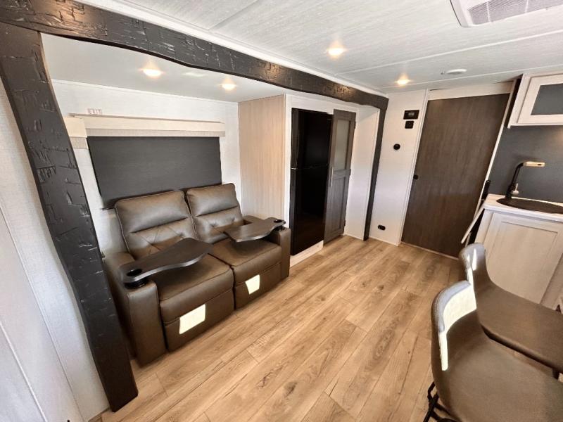 REAR BATH / OUTDOR KITCHEN / TAILGATE BAR TOP WITH 2 CHAIR / PUL OUT DINETTE TABLE / THEATER SEATING / KING BED / 400 W SOLAR !!
