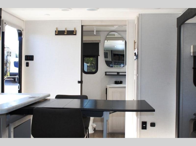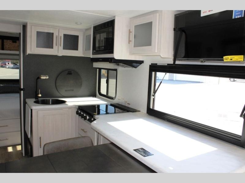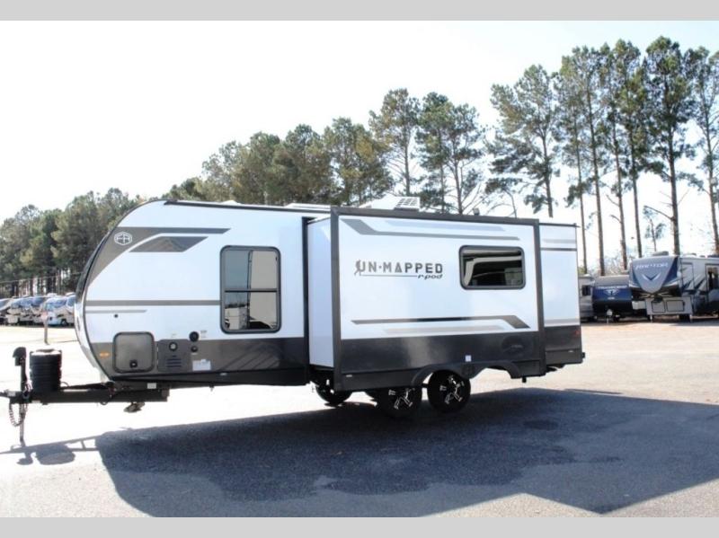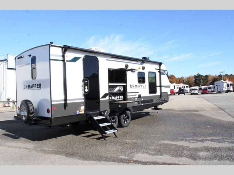 The Forest River Un-Mapped travel trailers deliver an unparalleled travel experience thanks to their incredible features, starting with the aluminum-framed floor with block foam insulation that ensures exceptional structural integrity and thermal efficiency, along with the sealed underbelly with forced heat & radiant foil barrier that provides superior insulation and heat management, and the power tongue jack facilitates easy maneuvering and stabilization of the trailer. Plus, the 30 Amp charge controller with solar inverter prep is ready for integration with solar power systems, catering to eco-conscious travelers seeking off-grid capabilities. Inside, you will find seamless Surf-X kitchen countertops that offer a sleek, durable surface and are easy to maintain for busy travelers. Further, the blackout roller shades will add privacy and light control for restful nights and cozy daytime retreats.