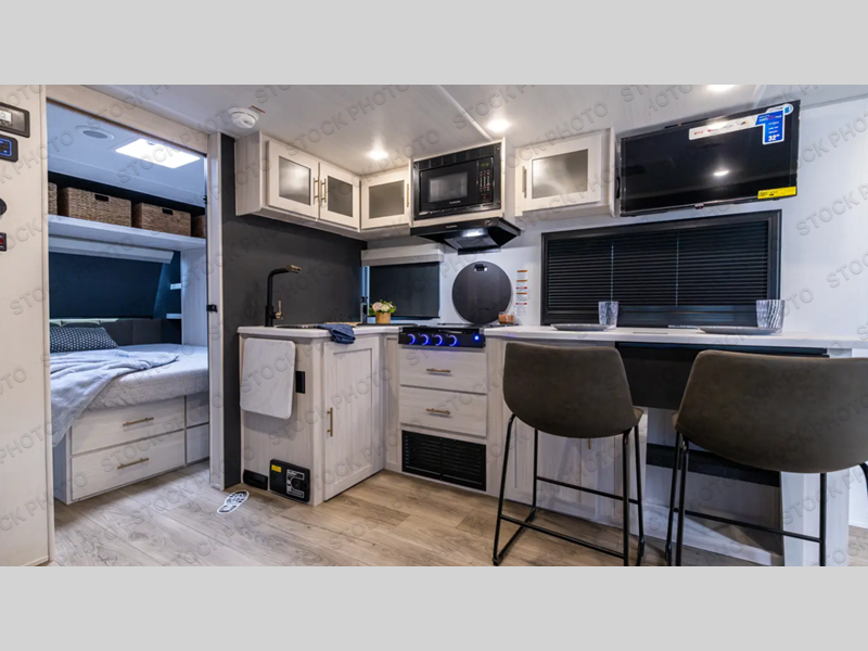 The Forest River Un-Mapped travel trailers deliver an unparalleled travel experience thanks to their incredible features, starting with the aluminum-framed floor with block foam insulation that ensures exceptional structural integrity and thermal efficiency, along with the sealed underbelly with forced heat & radiant foil barrier that provides superior insulation and heat management, and the power tongue jack facilitates easy maneuvering and stabilization of the trailer. Plus, the 30 Amp charge controller with solar inverter prep is ready for integration with solar power systems, catering to eco-conscious travelers seeking off-grid capabilities. Inside, you will find seamless Surf-X kitchen countertops that offer a sleek, durable surface and are easy to maintain for busy travelers. Further, the blackout roller shades will add privacy and light control for restful nights and cozy daytime retreats.