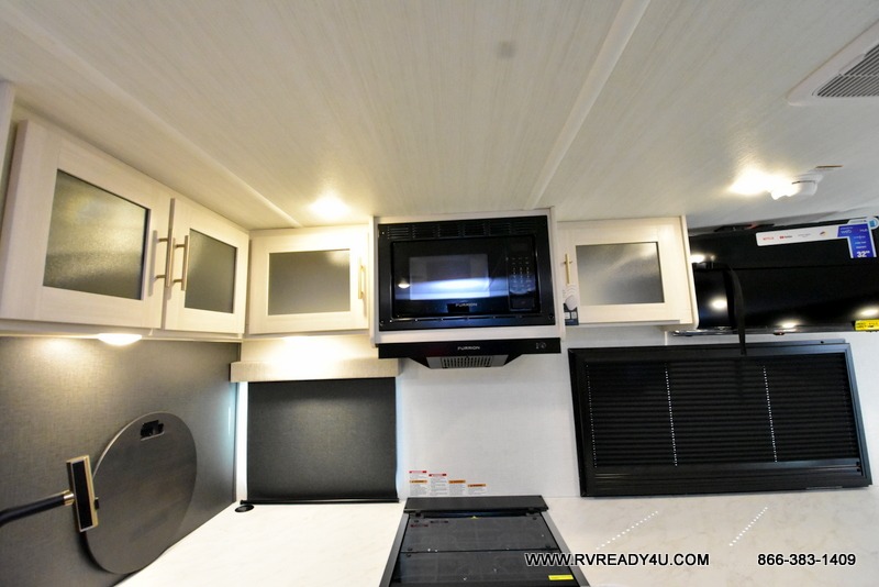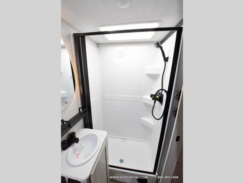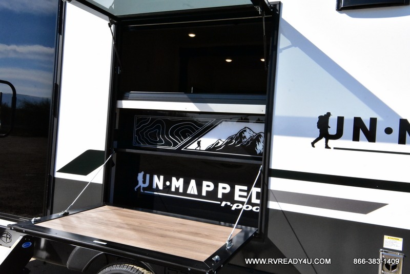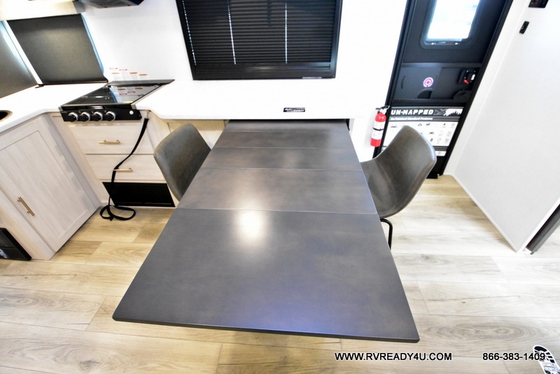 The Forest River Un-Mapped travel trailers deliver an unparalleled travel experience thanks to their incredible features, starting with the aluminum-framed floor with block foam insulation that ensures exceptional structural integrity and thermal efficiency, along with the sealed underbelly with forced heat & radiant foil barrier that provides superior insulation and heat management, and the power tongue jack facilitates easy maneuvering and stabilization of the trailer. Plus, the 30 Amp charge controller with solar inverter prep is ready for integration with solar power systems, catering to eco-conscious travelers seeking off-grid capabilities. Inside, you will find seamless Surf-X kitchen countertops that offer a sleek, durable surface and are easy to maintain for busy travelers. Further, the blackout roller shades will add privacy and light control for restful nights and cozy daytime retreats.