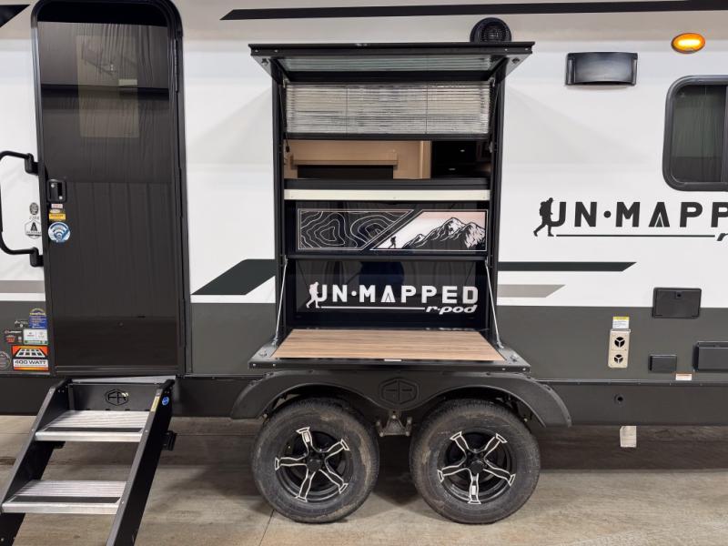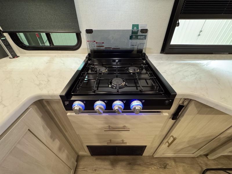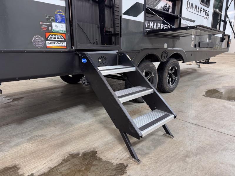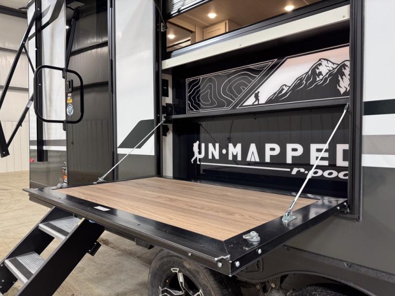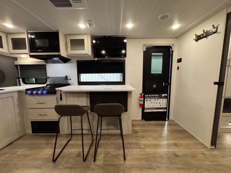 The Forest River Un-Mapped travel trailers deliver an unparalleled travel experience thanks to their incredible features, starting with the aluminum-framed floor with block foam insulation that ensures exceptional structural integrity and thermal efficiency, along with the sealed underbelly with forced heat & radiant foil barrier that provides superior insulation and heat management, and the power tongue jack facilitates easy maneuvering and stabilization of the trailer. Plus, the 30 Amp charge controller with solar inverter prep is ready for integration with solar power systems, catering to eco-conscious travelers seeking off-grid capabilities. Inside, you will find seamless Surf-X kitchen countertops that offer a sleek, durable surface and are easy to maintain for busy travelers. Further, the blackout roller shades will add privacy and light control for restful nights and cozy daytime retreats.