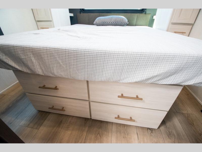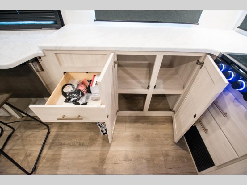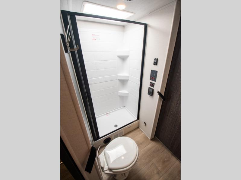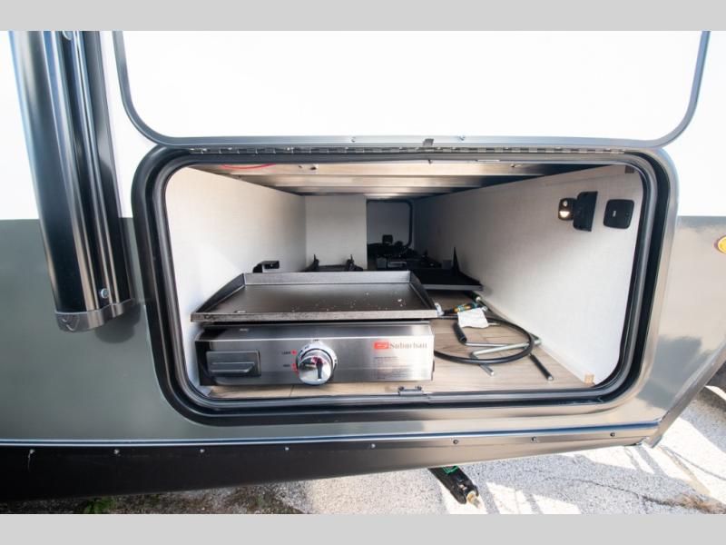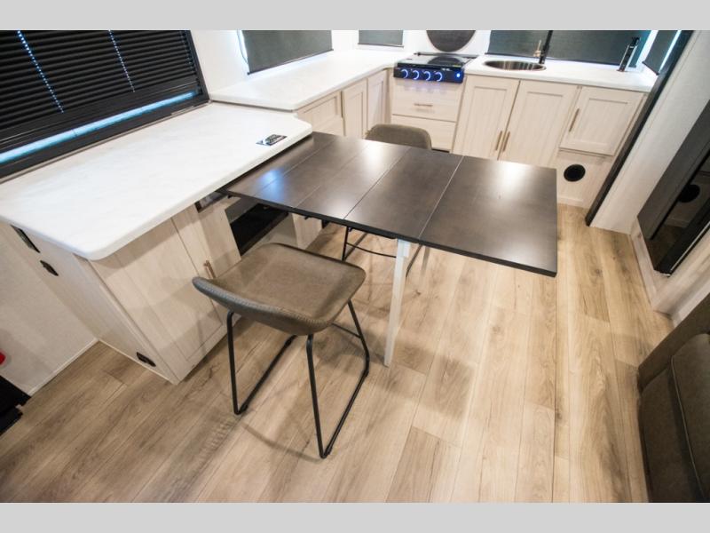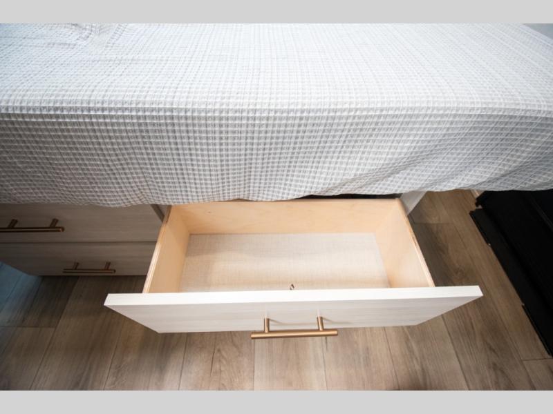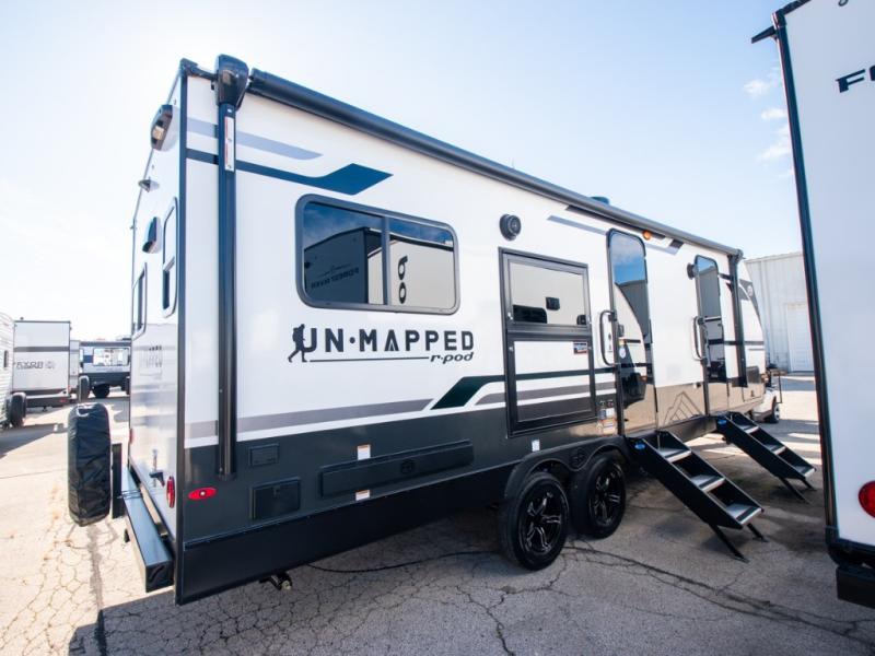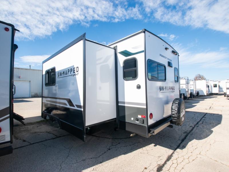 The Forest River Un-Mapped travel trailers deliver an unparalleled travel experience thanks to their incredible features, starting with the aluminum-framed floor with block foam insulation that ensures exceptional structural integrity and thermal efficiency, along with the sealed underbelly with forced heat & radiant foil barrier that provides superior insulation and heat management, and the power tongue jack facilitates easy maneuvering and stabilization of the trailer. Plus, the 30 Amp charge controller with solar inverter prep is ready for integration with solar power systems, catering to eco-conscious travelers seeking off-grid capabilities. Inside, you will find seamless Surf-X kitchen countertops that offer a sleek, durable surface and are easy to maintain for busy travelers. Further, the blackout roller shades will add privacy and light control for restful nights and cozy daytime retreats.