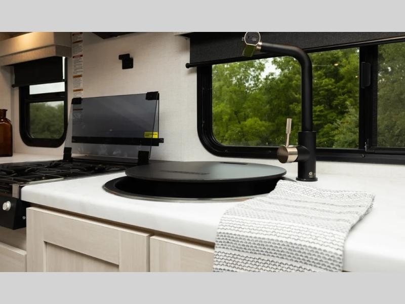 The Forest River Un-Mapped travel trailers deliver an unparalleled travel experience thanks to their incredible features, starting with the aluminum-framed floor with block foam insulation that ensures exceptional structural integrity and thermal efficiency, along with the sealed underbelly with forced heat & radiant foil barrier that provides superior insulation and heat management, and the power tongue jack facilitates easy maneuvering and stabilization of the trailer. Plus, the 30 Amp charge controller with solar inverter prep is ready for integration with solar power systems, catering to eco-conscious travelers seeking off-grid capabilities. Inside, you will find seamless Surf-X kitchen countertops that offer a sleek, durable surface and are easy to maintain for busy travelers. Further, the blackout roller shades will add privacy and light control for restful nights and cozy daytime retreats.