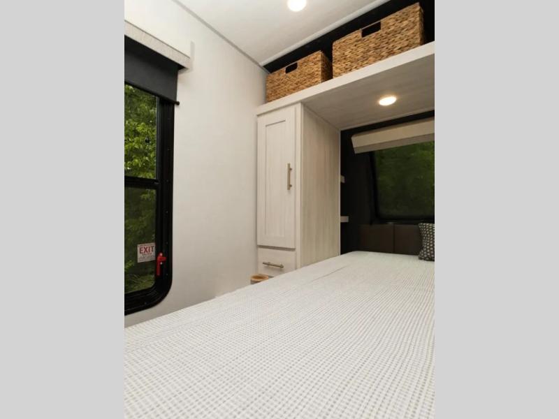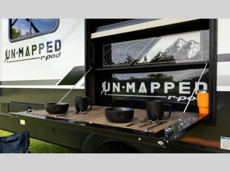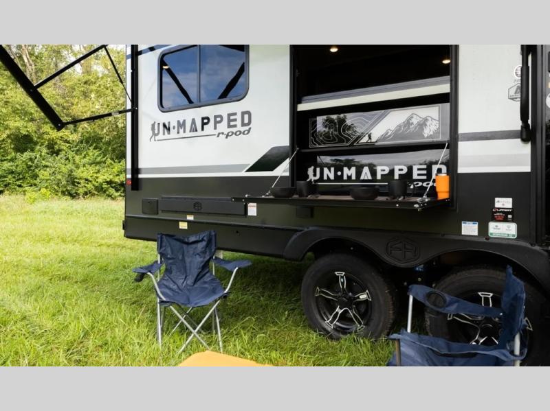 The Forest River Un-Mapped travel trailers deliver an unparalleled travel experience thanks to their incredible features, starting with the aluminum-framed floor with block foam insulation that ensures exceptional structural integrity and thermal efficiency, along with the sealed underbelly with forced heat & radiant foil barrier that provides superior insulation and heat management, and the power tongue jack facilitates easy maneuvering and stabilization of the trailer. Plus, the 30 Amp charge controller with solar inverter prep is ready for integration with solar power systems, catering to eco-conscious travelers seeking off-grid capabilities. Inside, you will find seamless Surf-X kitchen countertops that offer a sleek, durable surface and are easy to maintain for busy travelers. Further, the blackout roller shades will add privacy and light control for restful nights and cozy daytime retreats.