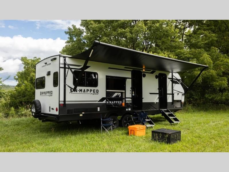 The Forest River Un-Mapped travel trailers deliver an unparalleled travel experience thanks to their incredible features, starting with the aluminum-framed floor with block foam insulation that ensures exceptional structural integrity and thermal efficiency, along with the sealed underbelly with forced heat & radiant foil barrier that provides superior insulation and heat management, and the power tongue jack facilitates easy maneuvering and stabilization of the trailer. Plus, the 30 Amp charge controller with solar inverter prep is ready for integration with solar power systems, catering to eco-conscious travelers seeking off-grid capabilities. Inside, you will find seamless Surf-X kitchen countertops that offer a sleek, durable surface and are easy to maintain for busy travelers. Further, the blackout roller shades will add privacy and light control for restful nights and cozy daytime retreats.