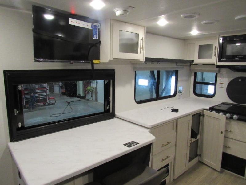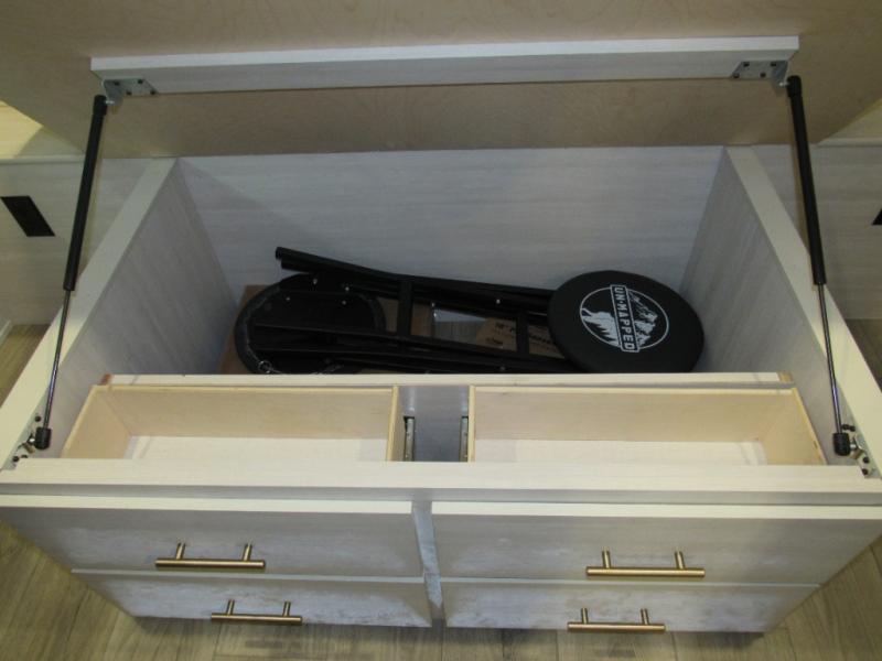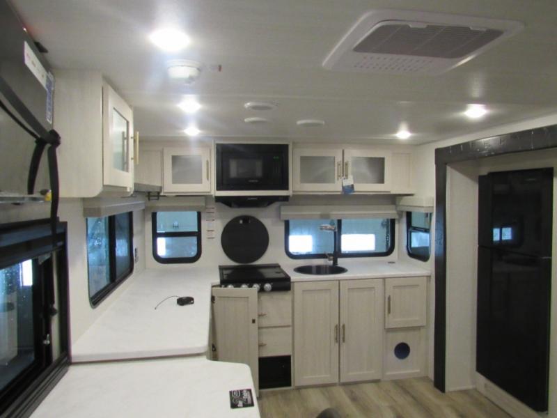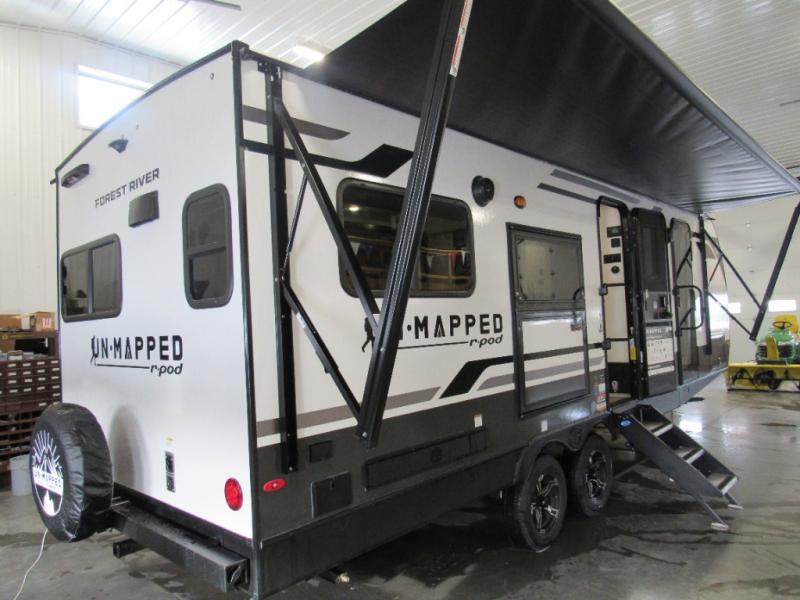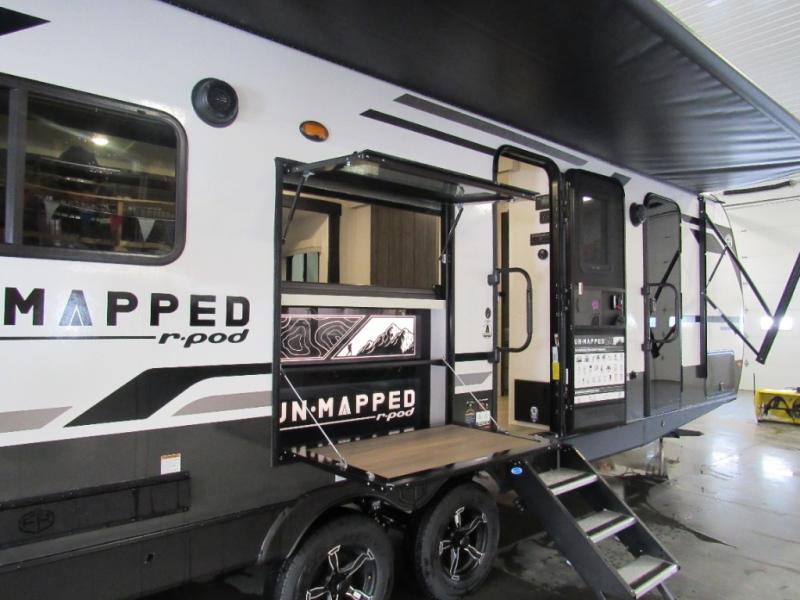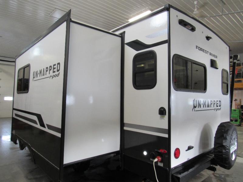 The Forest River Un-Mapped travel trailers deliver an unparalleled travel experience thanks to their incredible features, starting with the aluminum-framed floor with block foam insulation that ensures exceptional structural integrity and thermal efficiency, along with the sealed underbelly with forced heat & radiant foil barrier that provides superior insulation and heat management, and the power tongue jack facilitates easy maneuvering and stabilization of the trailer. Plus, the 30 Amp charge controller with solar inverter prep is ready for integration with solar power systems, catering to eco-conscious travelers seeking off-grid capabilities. Inside, you will find seamless Surf-X kitchen countertops that offer a sleek, durable surface and are easy to maintain for busy travelers. Further, the blackout roller shades will add privacy and light control for restful nights and cozy daytime retreats.