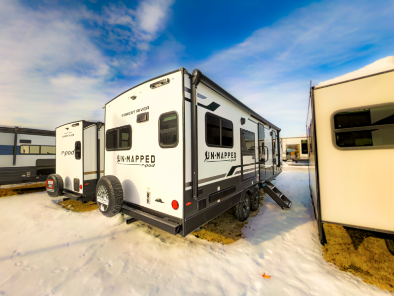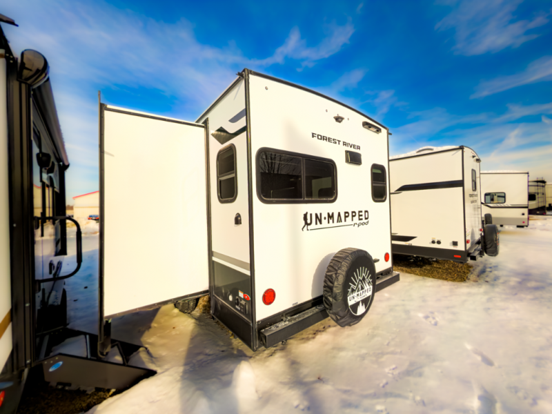 2026 R-Pod 24RK at Price Right RV. 28' 11", rear kitchen, 21' awning, king bed, tankless water heater — half-ton towable for Michigan camping.