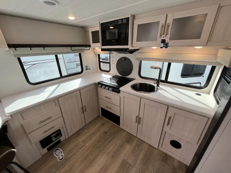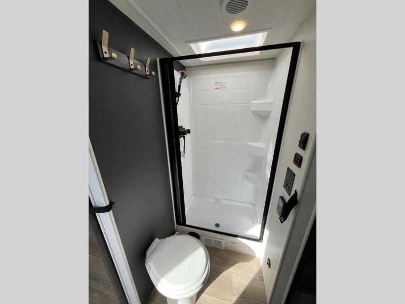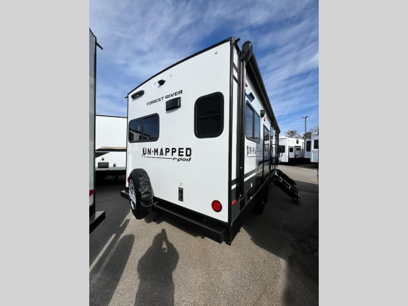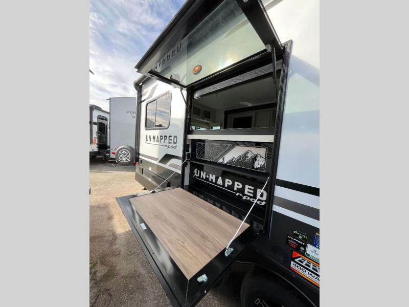 The Forest River Un-Mapped travel trailers deliver an unparalleled travel experience thanks to their incredible features, starting with the aluminum-framed floor with block foam insulation that ensures exceptional structural integrity and thermal efficiency, along with the sealed underbelly with forced heat & radiant foil barrier that provides superior insulation and heat management, and the power tongue jack facilitates easy maneuvering and stabilization of the trailer. Plus, the 30 Amp charge controller with solar inverter prep is ready for integration with solar power systems, catering to eco-conscious travelers seeking off-grid capabilities. Inside, you will find seamless Surf-X kitchen countertops that offer a sleek, durable surface and are easy to maintain for busy travelers. Further, the blackout roller shades will add privacy and light control for restful nights and cozy daytime retreats.