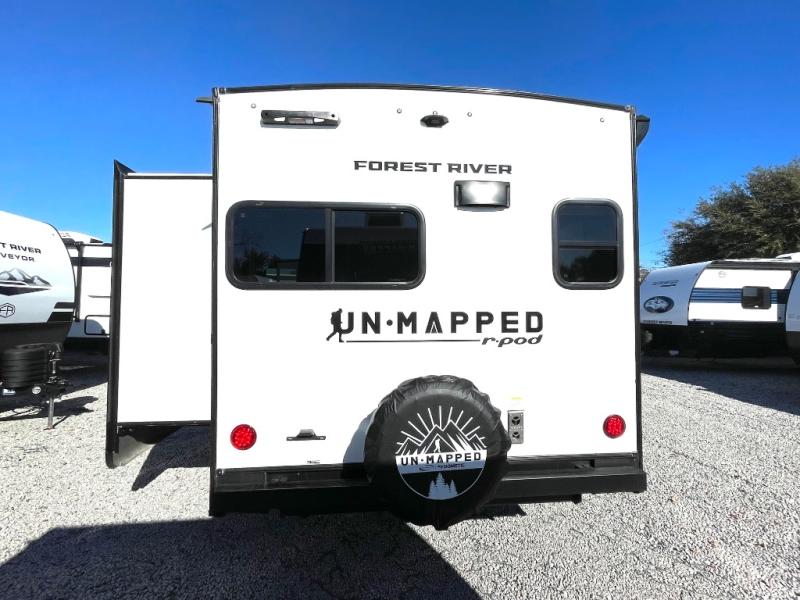 The Forest River Un-Mapped travel trailers deliver an unparalleled travel experience thanks to their incredible features, starting with the aluminum-framed floor with block foam insulation that ensures exceptional structural integrity and thermal efficiency, along with the sealed underbelly with forced heat & radiant foil barrier that provides superior insulation and heat management, and the power tongue jack facilitates easy maneuvering and stabilization of the trailer. Plus, the 30 Amp charge controller with solar inverter prep is ready for integration with solar power systems, catering to eco-conscious travelers seeking off-grid capabilities. Inside, you will find seamless Surf-X kitchen countertops that offer a sleek, durable surface and are easy to maintain for busy travelers. Further, the blackout roller shades will add privacy and light control for restful nights and cozy daytime retreats.
