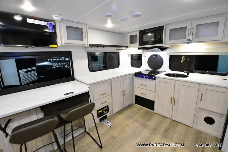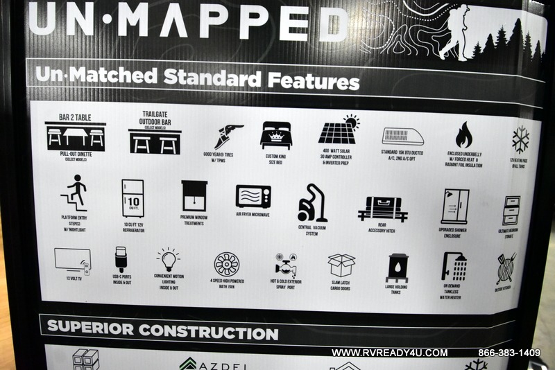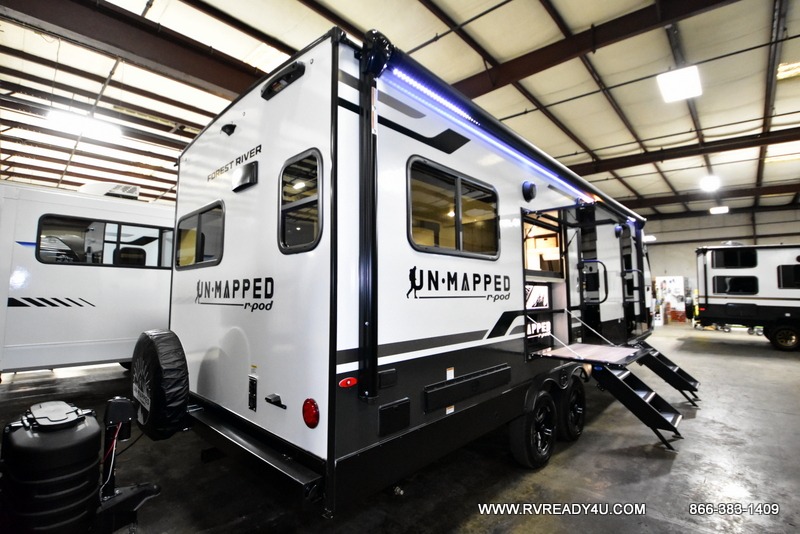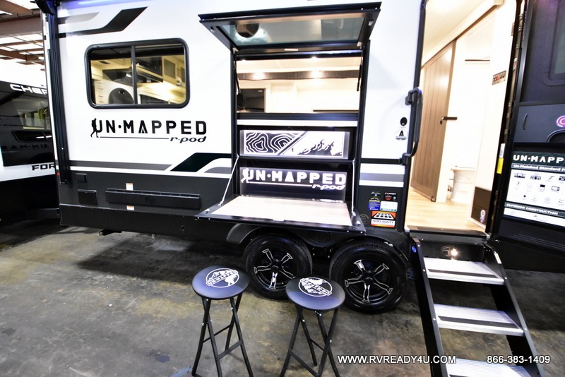 The Forest River Un-Mapped travel trailers deliver an unparalleled travel experience thanks to their incredible features, starting with the aluminum-framed floor with block foam insulation that ensures exceptional structural integrity and thermal efficiency, along with the sealed underbelly with forced heat & radiant foil barrier that provides superior insulation and heat management, and the power tongue jack facilitates easy maneuvering and stabilization of the trailer. Plus, the 30 Amp charge controller with solar inverter prep is ready for integration with solar power systems, catering to eco-conscious travelers seeking off-grid capabilities. Inside, you will find seamless Surf-X kitchen countertops that offer a sleek, durable surface and are easy to maintain for busy travelers. Further, the blackout roller shades will add privacy and light control for restful nights and cozy daytime retreats.