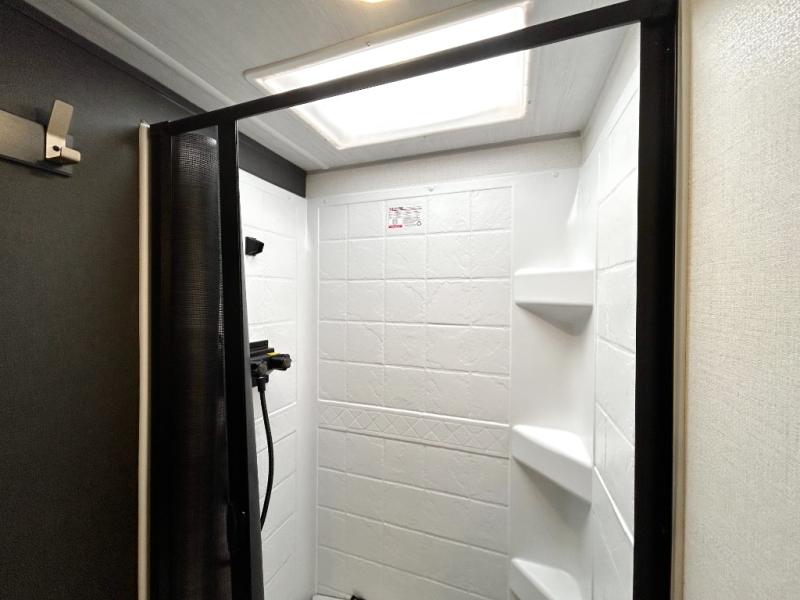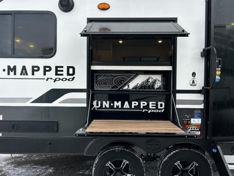 The Forest River Un-Mapped travel trailers deliver an unparalleled travel experience thanks to their incredible features, starting with the aluminum-framed floor with block foam insulation that ensures exceptional structural integrity and thermal efficiency, along with the sealed underbelly with forced heat & radiant foil barrier that provides superior insulation and heat management, and the power tongue jack facilitates easy maneuvering and stabilization of the trailer. Plus, the 30 Amp charge controller with solar inverter prep is ready for integration with solar power systems, catering to eco-conscious travelers seeking off-grid capabilities. Inside, you will find seamless Surf-X kitchen countertops that offer a sleek, durable surface and are easy to maintain for busy travelers. Further, the blackout roller shades will add privacy and light control for restful nights and cozy daytime retreats.
