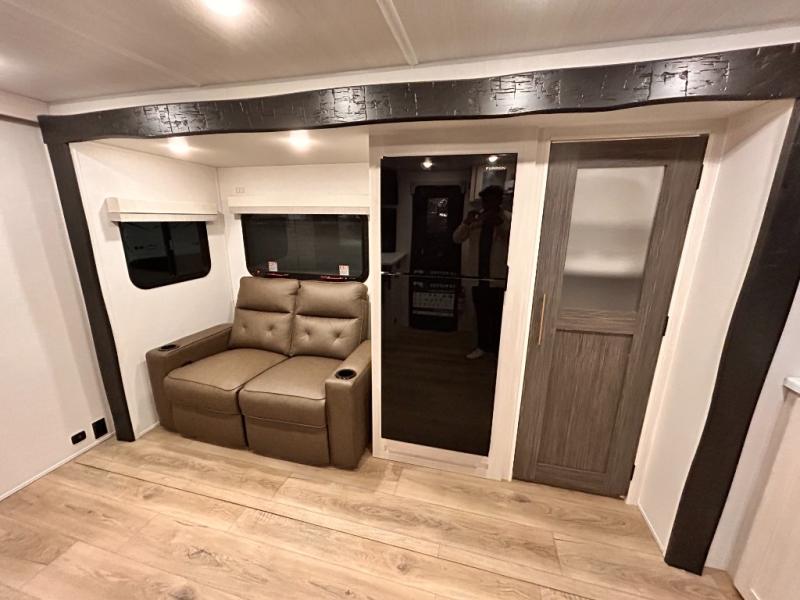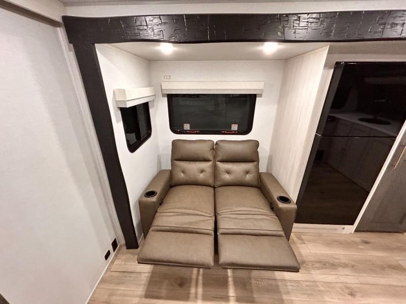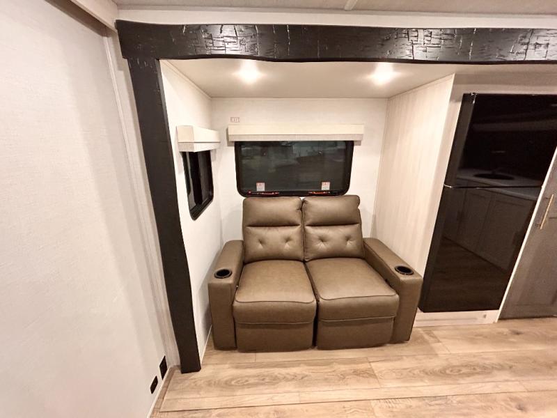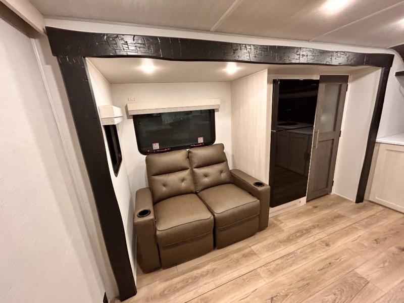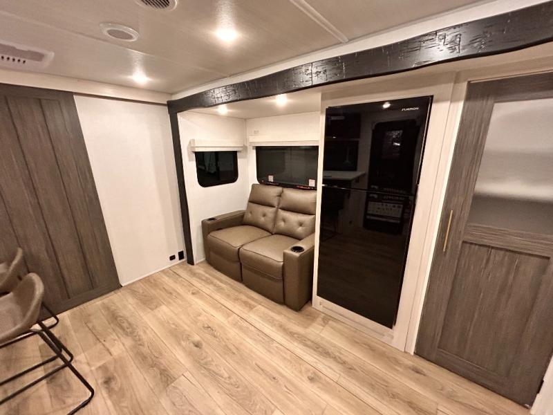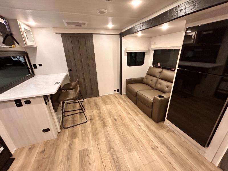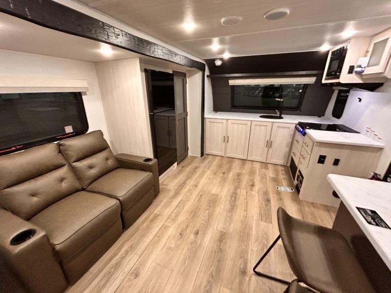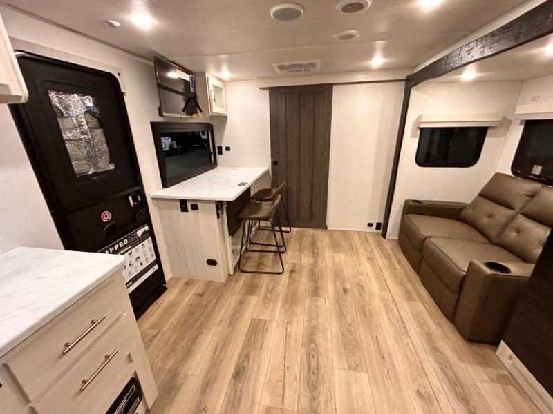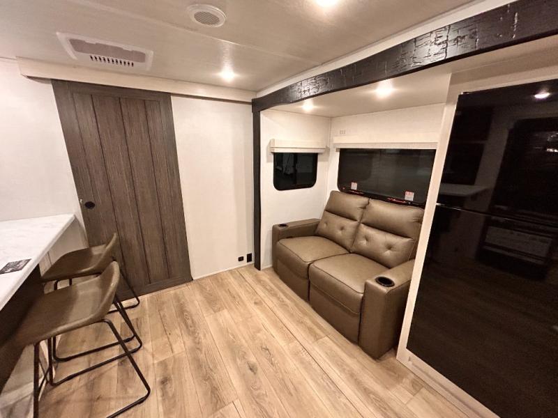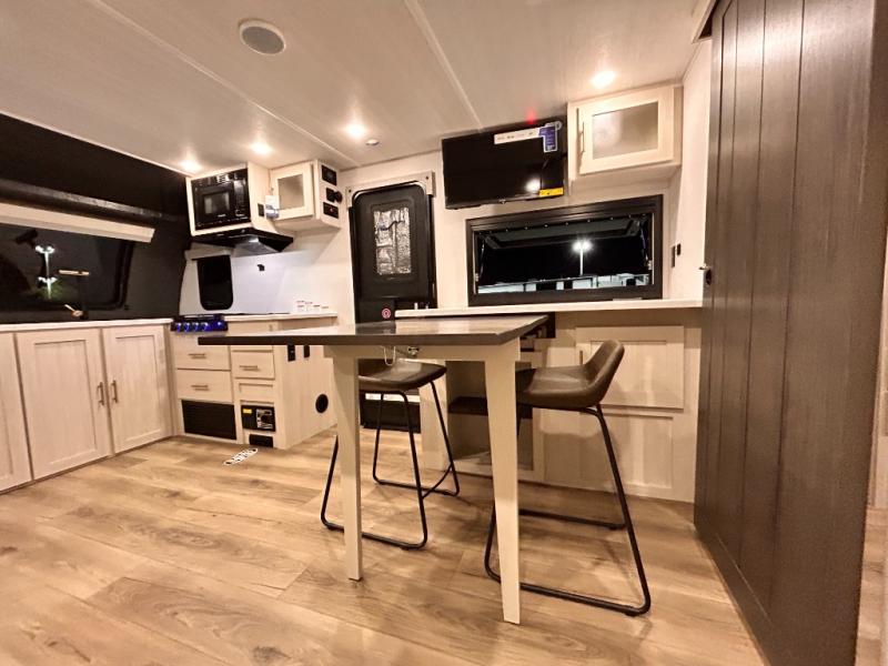 OUTDOR KITCHEN / TAILGATE BAR TOP WITH 2 CHAIR / FRONT KITCHEN / PUL OUT DINETTE TABLE / KING BED / THEATER SEATING / 400W SOLAR PANEL !!
