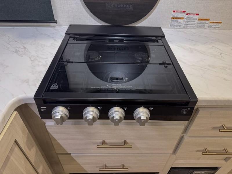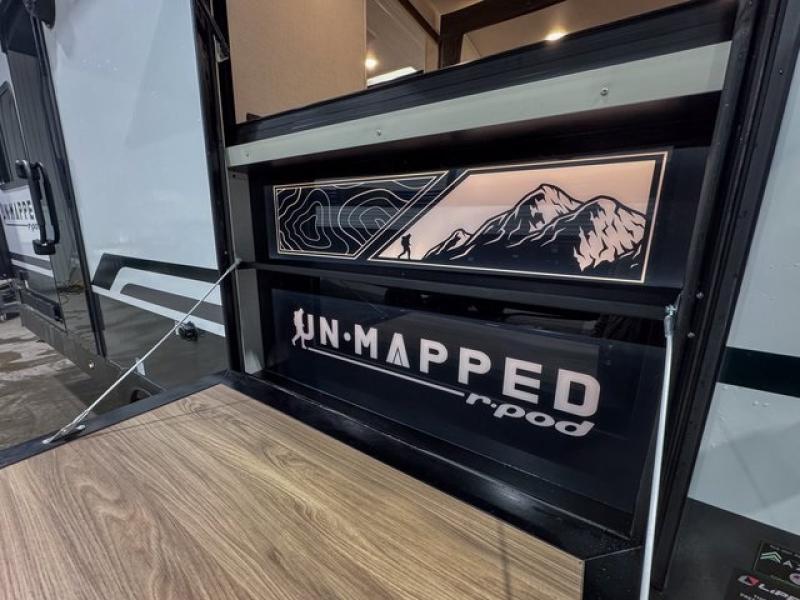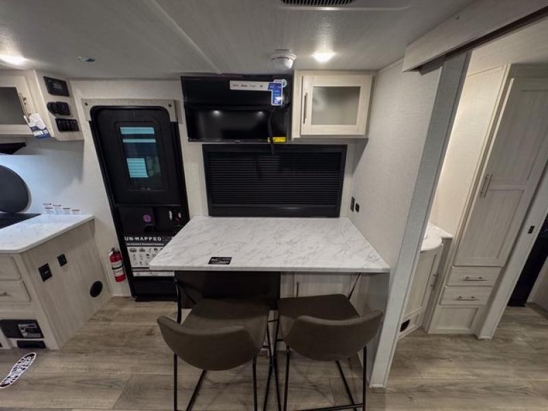 The Forest River Un-Mapped travel trailers deliver an unparalleled travel experience thanks to their incredible features, starting with the aluminum-framed floor with block foam insulation that ensures exceptional structural integrity and thermal efficiency, along with the sealed underbelly with forced heat & radiant foil barrier that provides superior insulation and heat management, and the power tongue jack facilitates easy maneuvering and stabilization of the trailer. Plus, the 30 Amp charge controller with solar inverter prep is ready for integration with solar power systems, catering to eco-conscious travelers seeking off-grid capabilities. Inside, you will find seamless Surf-X kitchen countertops that offer a sleek, durable surface and are easy to maintain for busy travelers. Further, the blackout roller shades will add privacy and light control for restful nights and cozy daytime retreats.